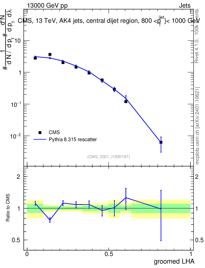 Lines: data, pythia8 8.315 rescatter |