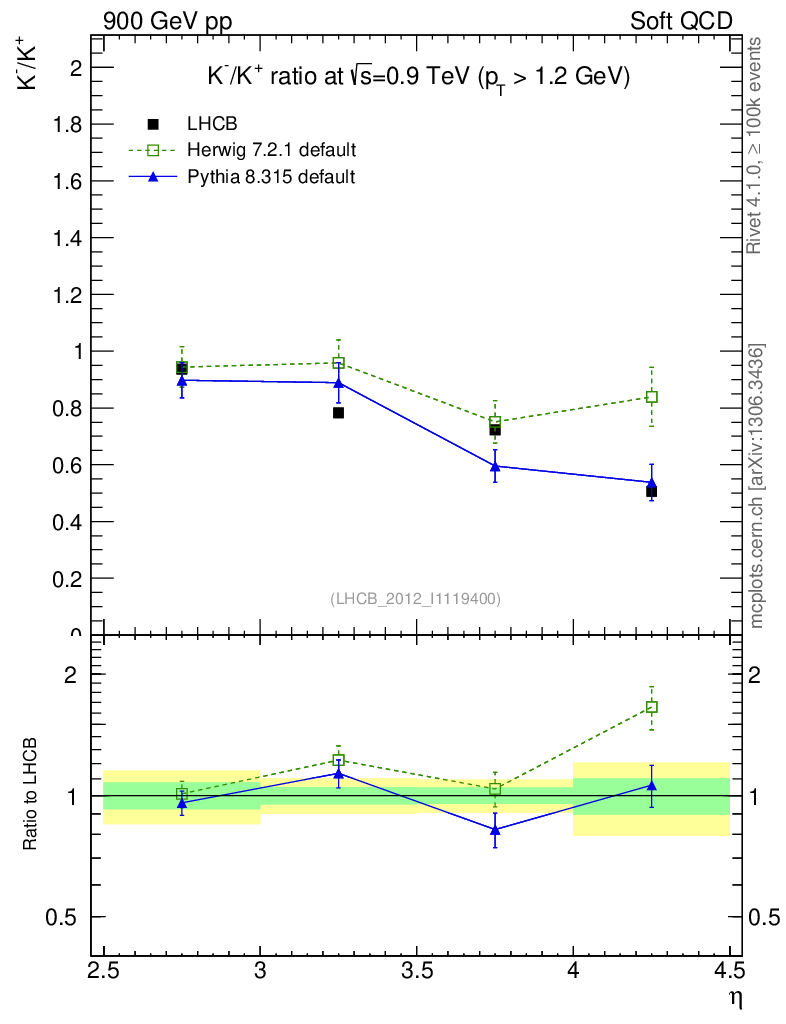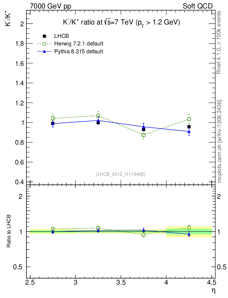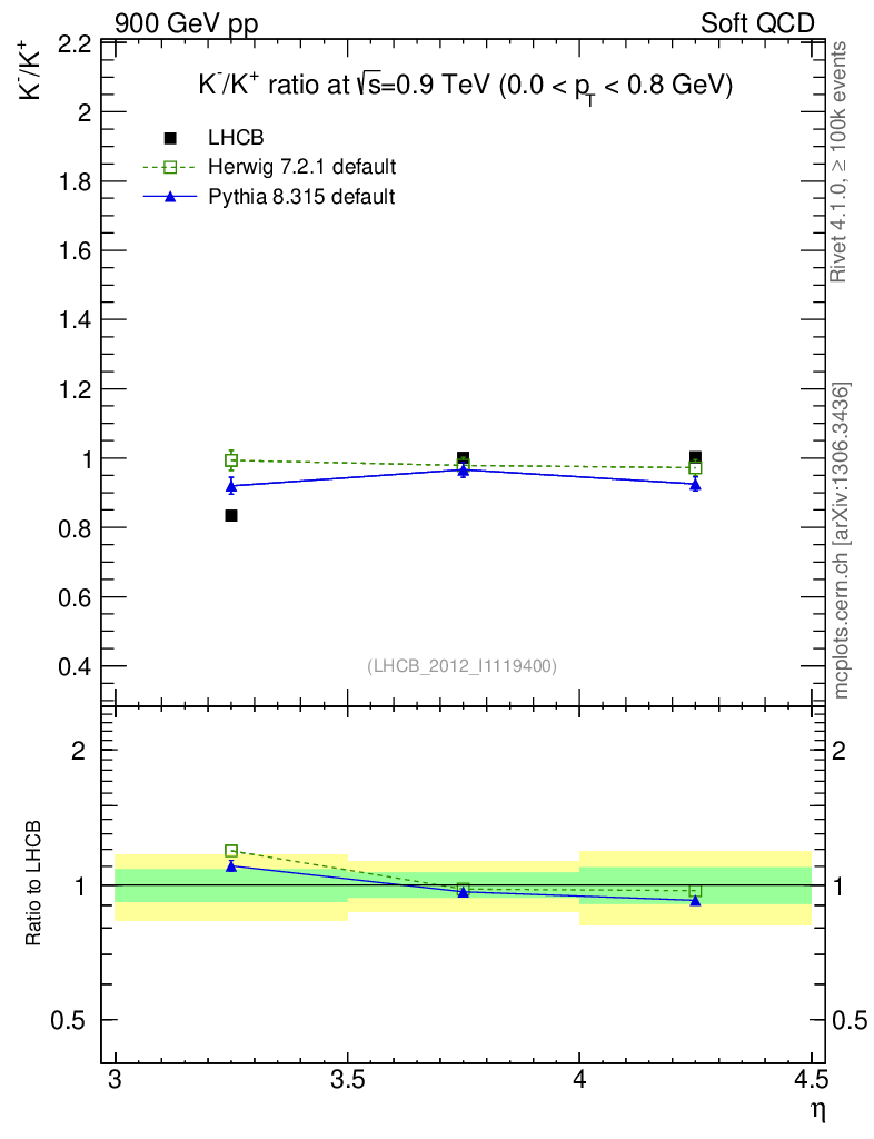 Soft QCD (inelastic) : Identified Particles : Ratios : K-/K+ vs |y|