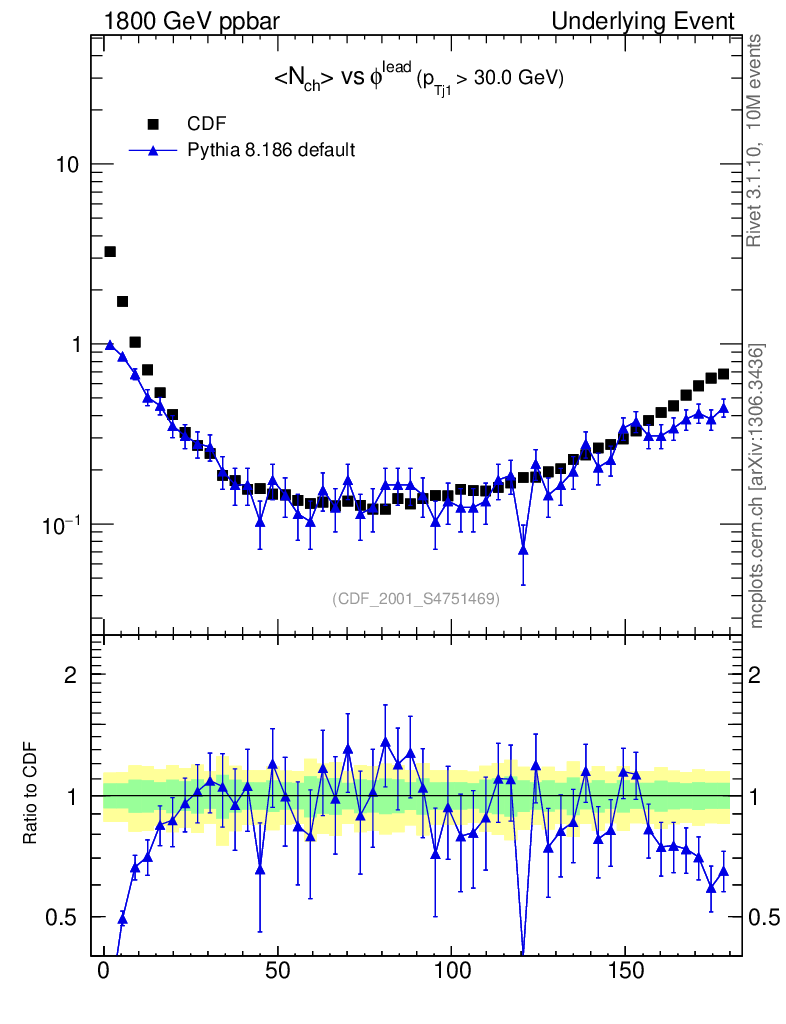 Plot of nch-vs-dphi in 1800 GeV ppbar collisions