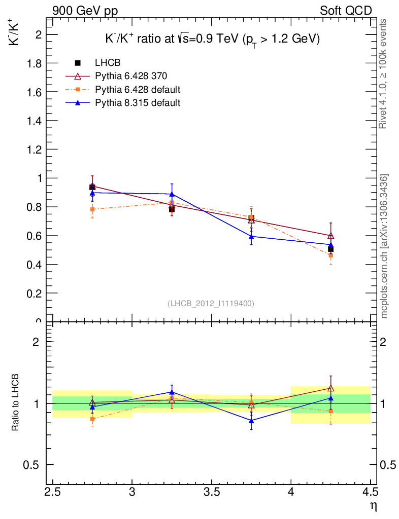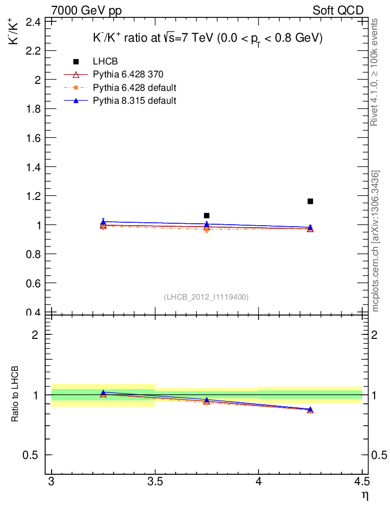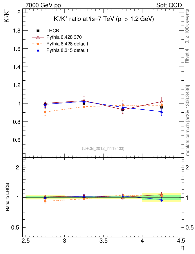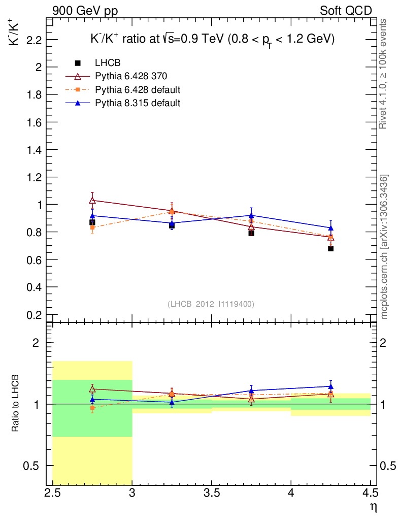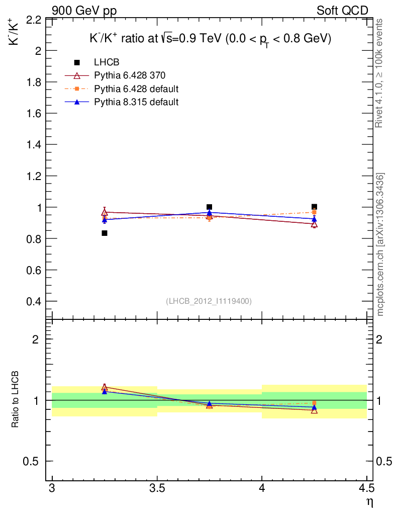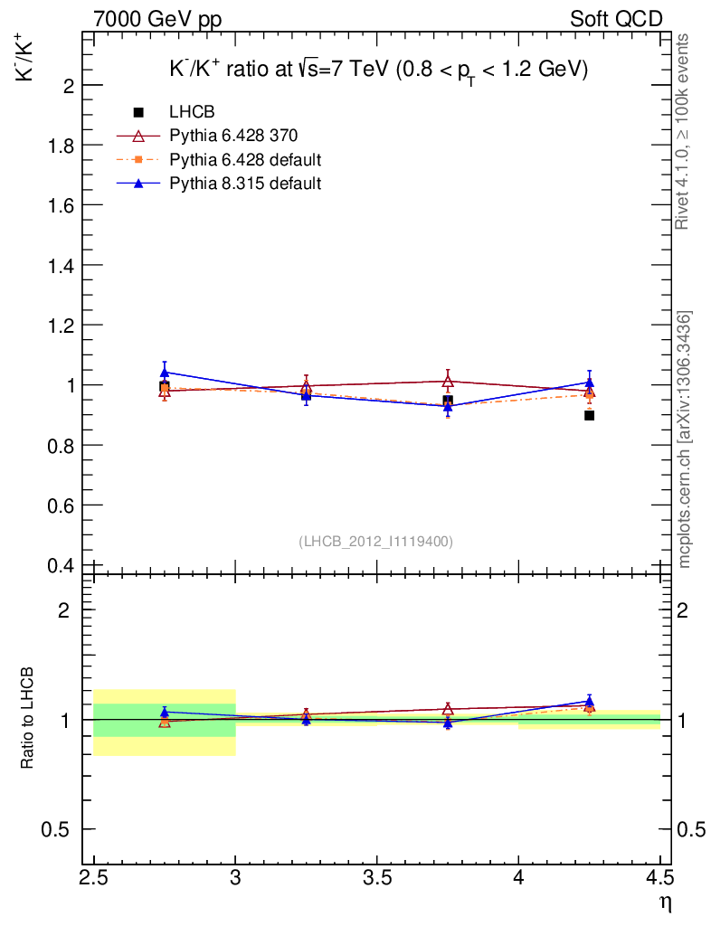 Soft QCD (inelastic) : Identified Particles : Ratios : K-/K+ vs |y|