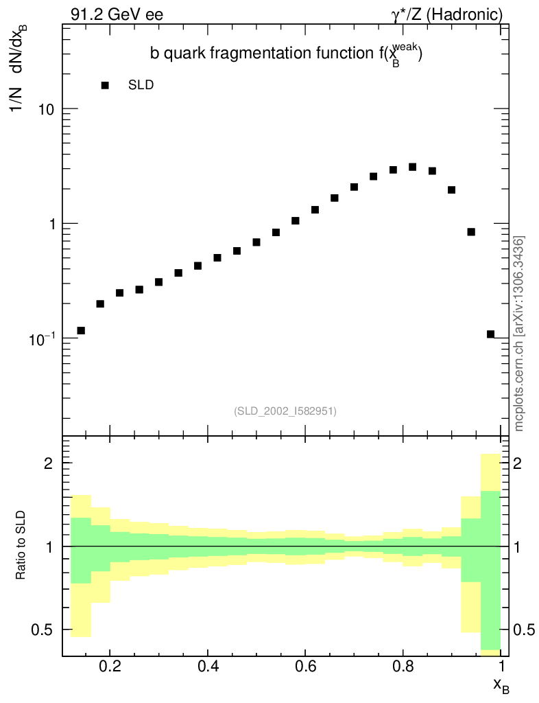 Plot of b-f-weak in 91.2 GeV ee collisions