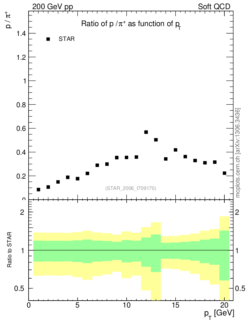 Soft QCD (inelastic) : Identified Particles : Ratios : p/π+ vs pT