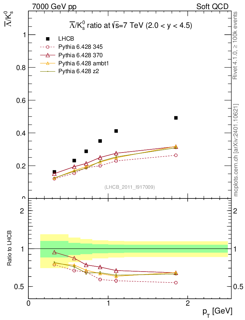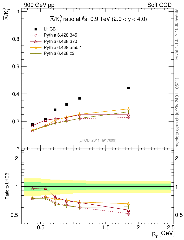 Soft QCD (inelastic) : Identified Particles : Ratios : Λbar/K0S vs pT