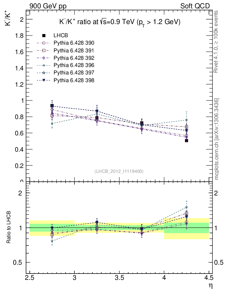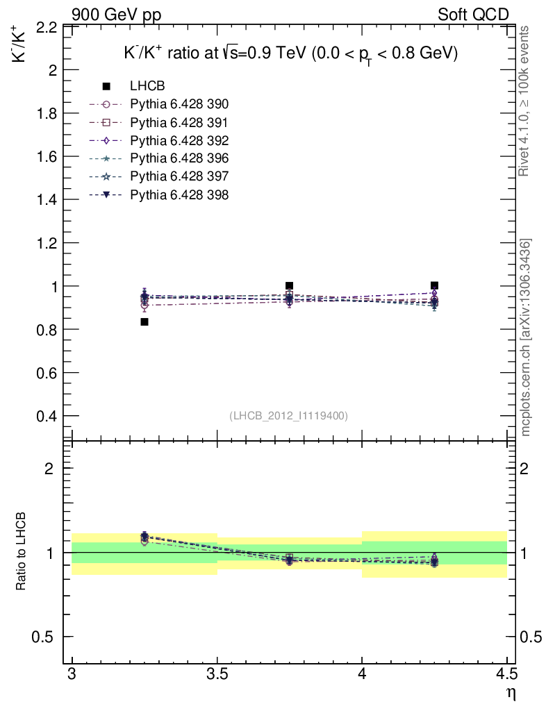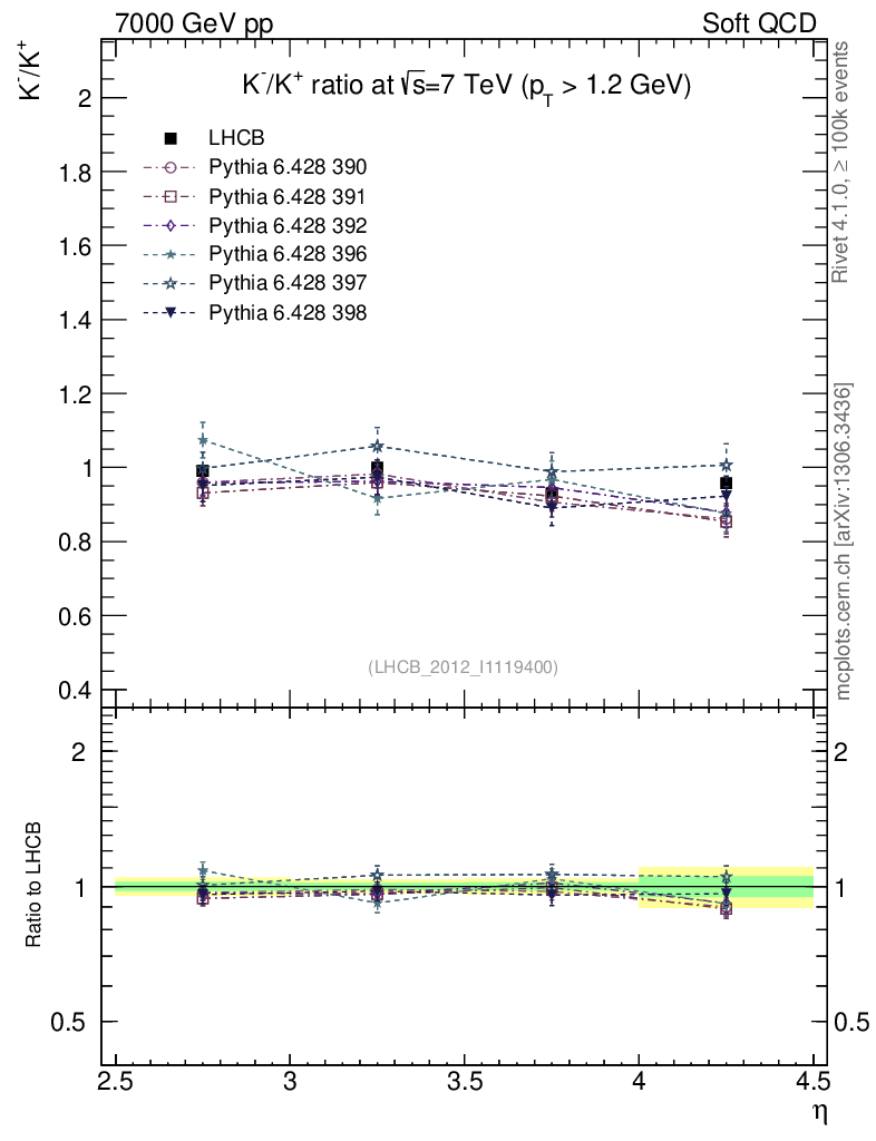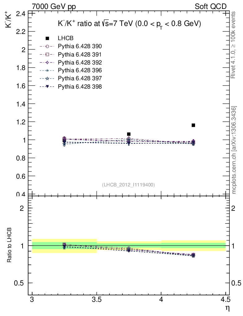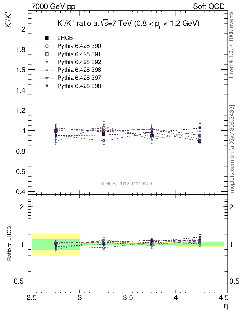 Soft QCD (inelastic) : Identified Particles : Ratios : K-/K+ vs |y|