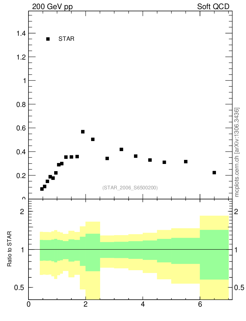 Soft QCD (inelastic) : Identified Particles : Ratios : p/π+ vs pT