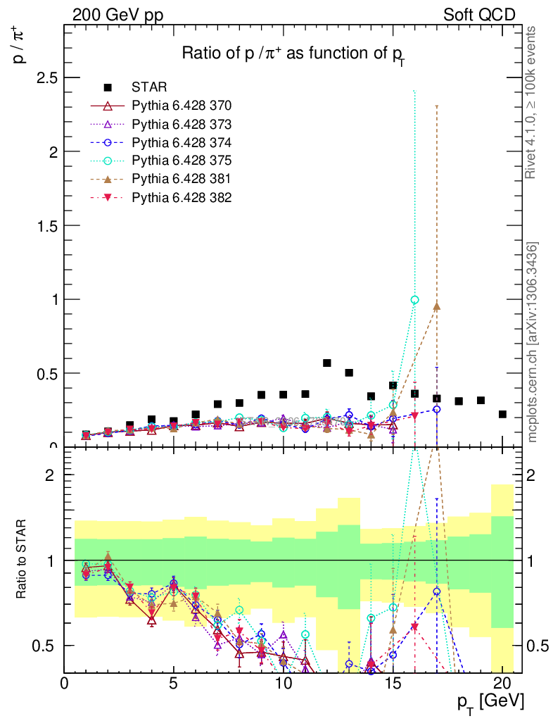 Soft QCD (inelastic) : Identified Particles : Ratios : p/π+ vs pT