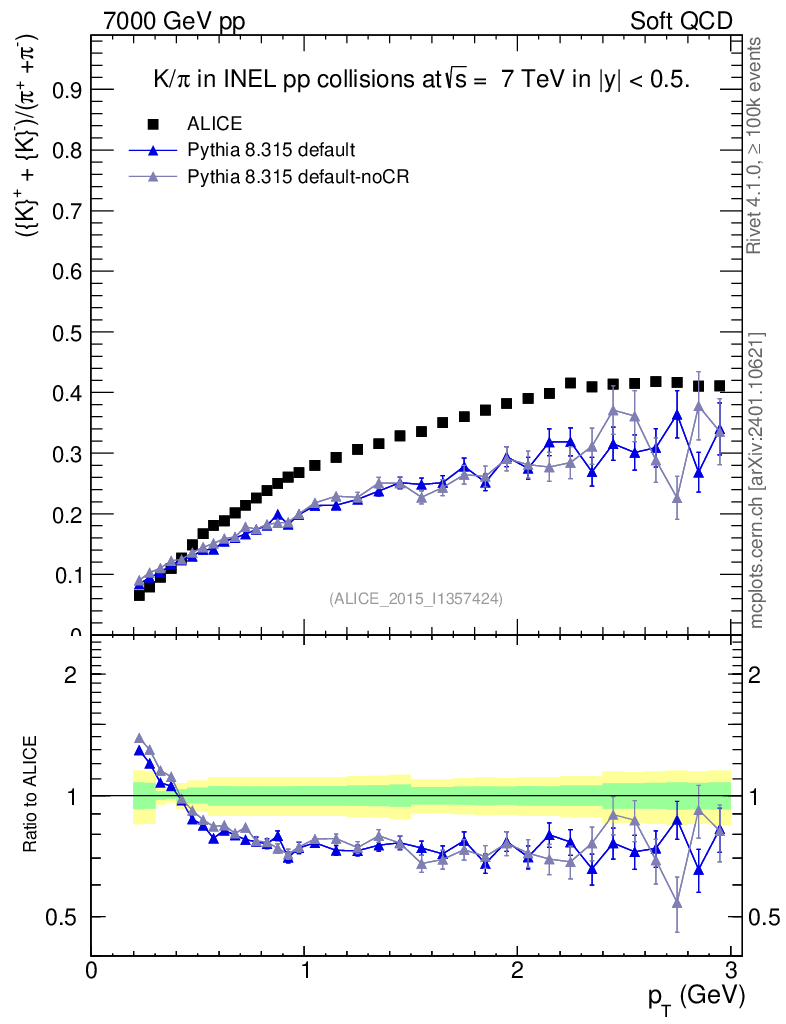 Soft QCD (inelastic) : Identified Particles : Ratios : (K-+K+)/(π-+π+) vs pT