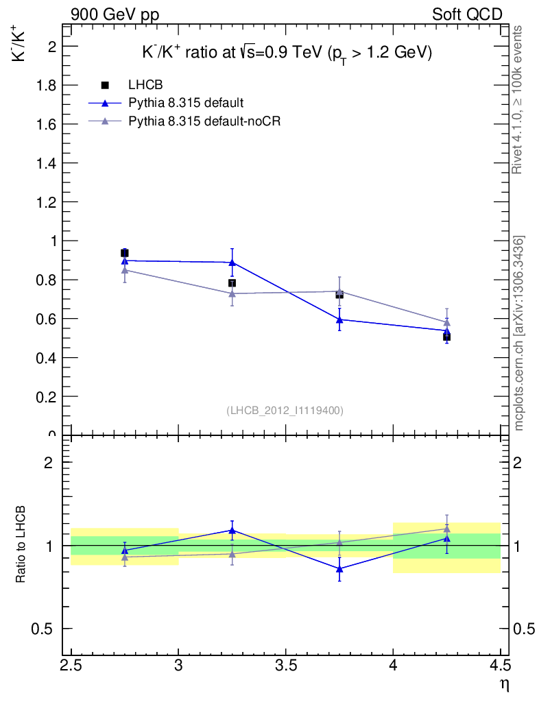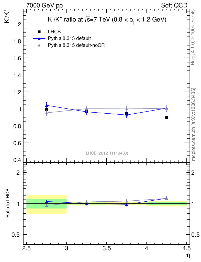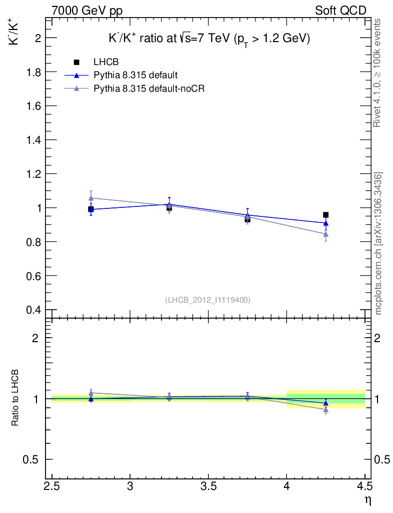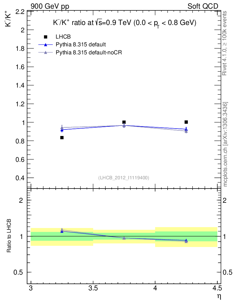Soft QCD (inelastic) : Identified Particles : Ratios : K-/K+ vs |y|