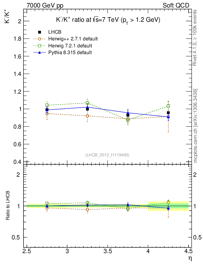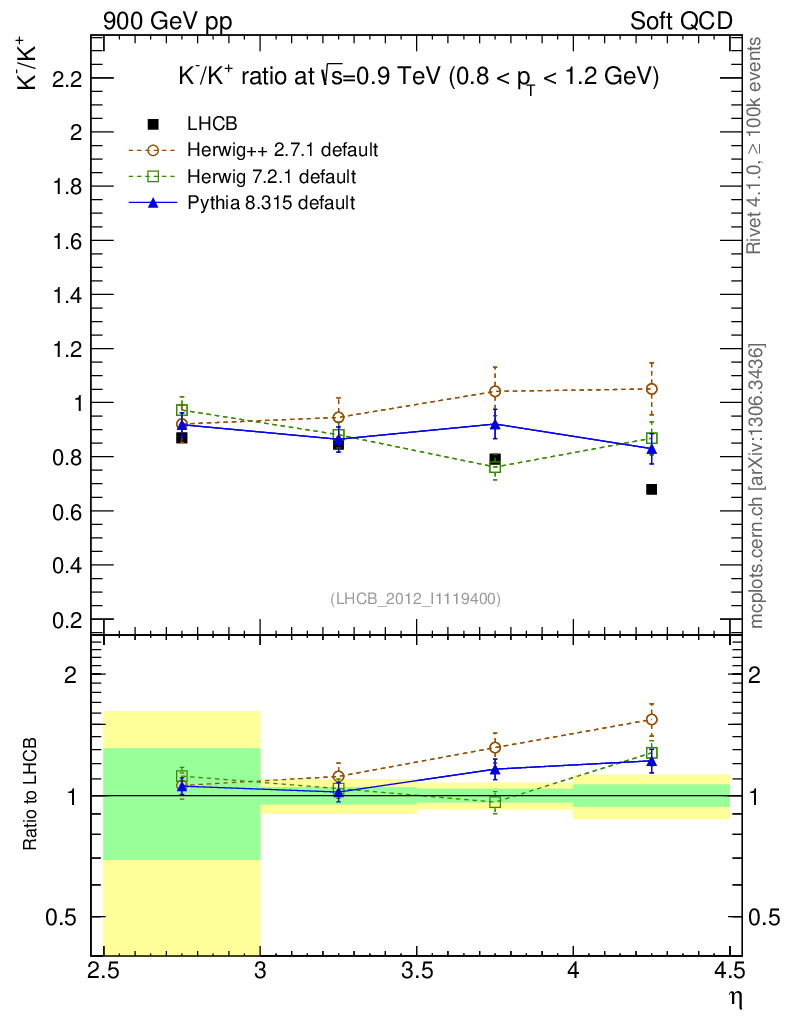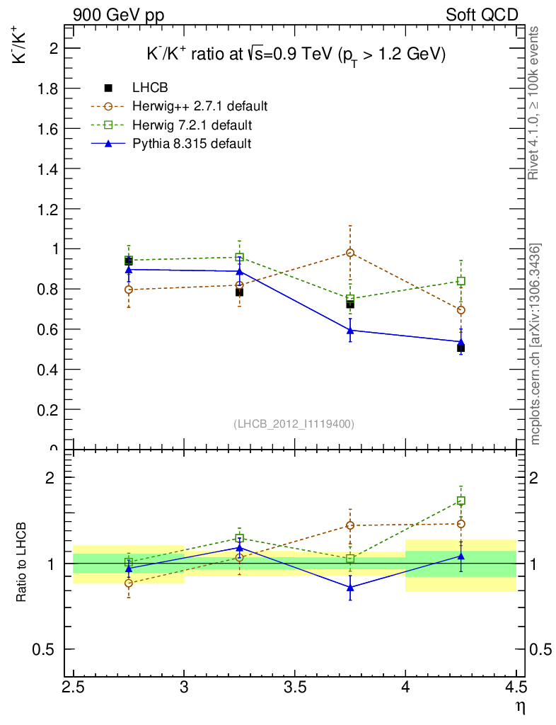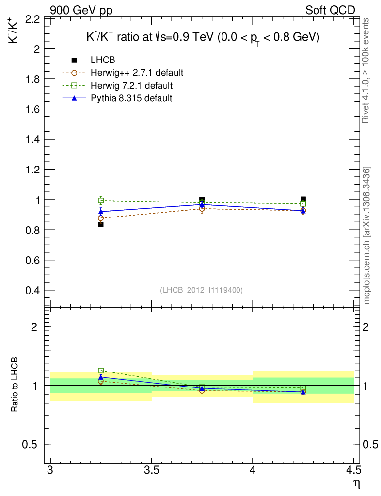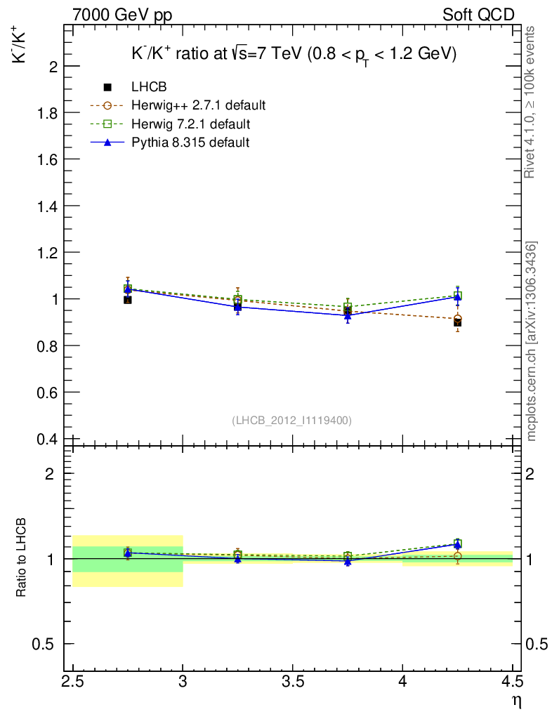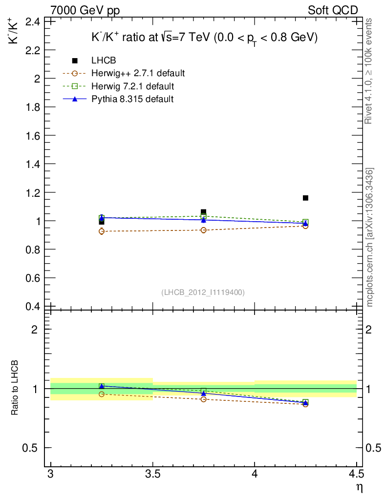 Soft QCD (inelastic) : Identified Particles : Ratios : K-/K+ vs |y|