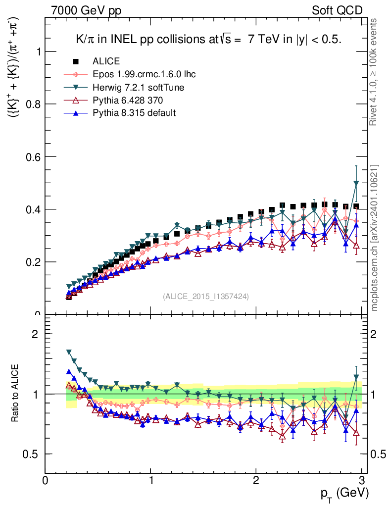 Soft QCD (inelastic) : Identified Particles : Ratios : (K-+K+)/(π-+π+) vs pT
