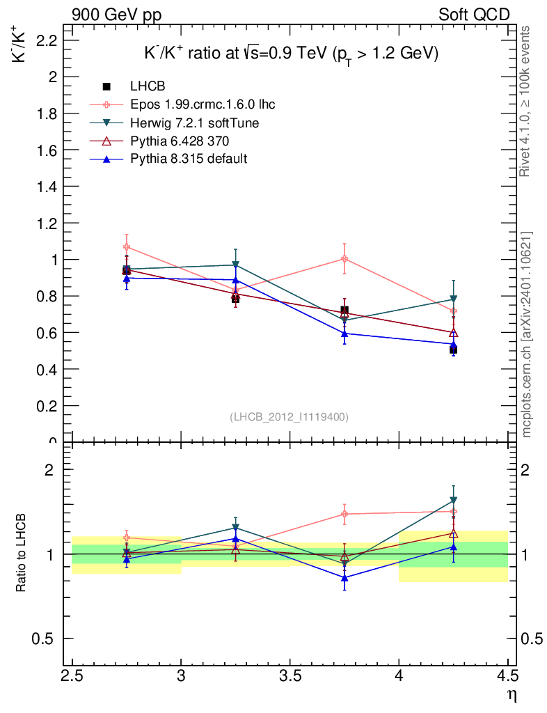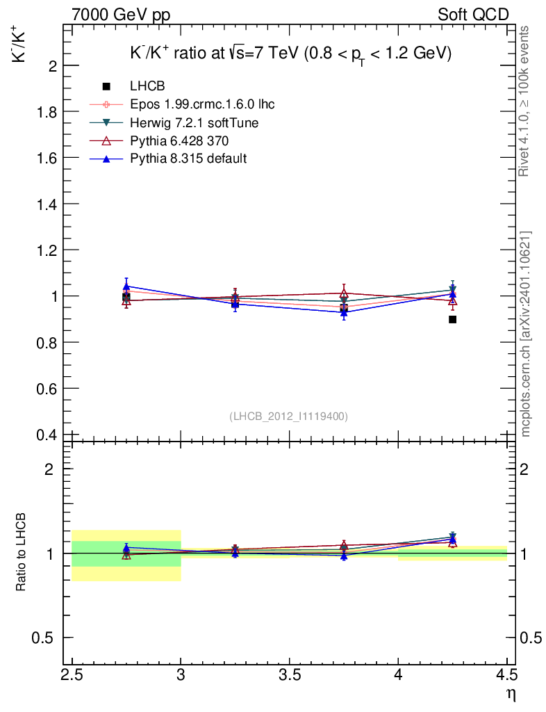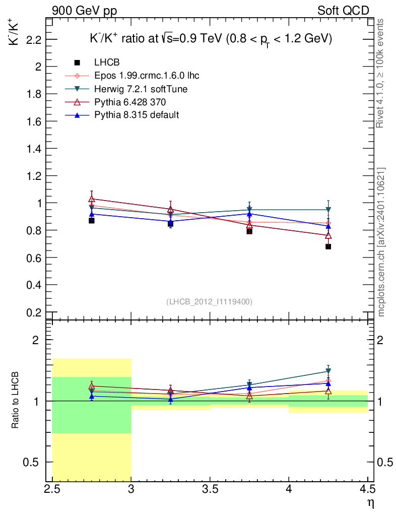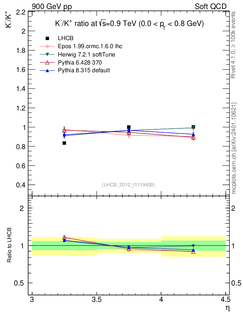 Soft QCD (inelastic) : Identified Particles : Ratios : K-/K+ vs |y|