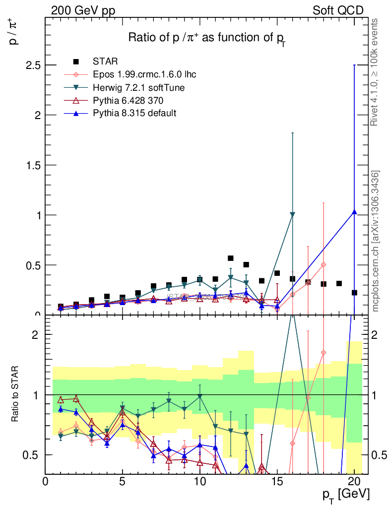 Soft QCD (inelastic) : Identified Particles : Ratios : p/π+ vs pT