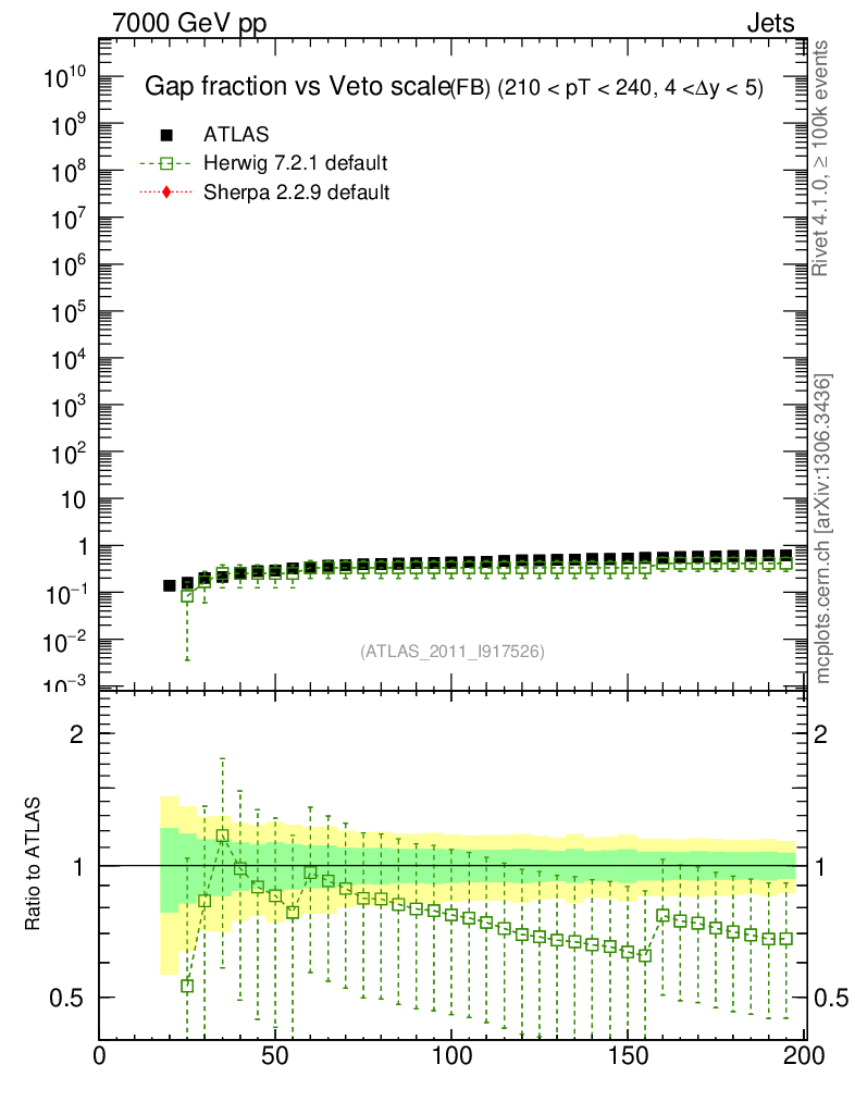 Jets : Jets + Veto : Gap frac. vs Veto scale (FB)