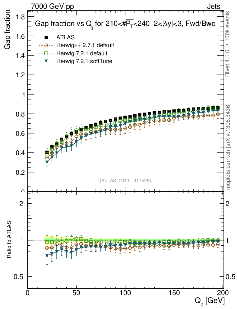 Jets : Jets + Veto : Gap frac. vs Veto scale (FB)