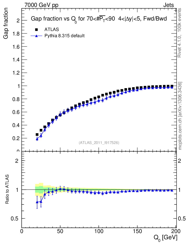 Jets : Jets + Veto : Gap frac. vs Veto scale (FB)