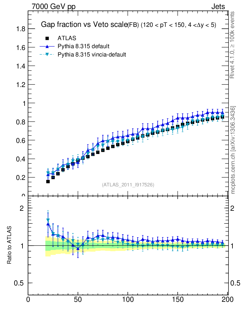 Jets : Jets + Veto : Gap frac. vs Veto scale (FB)