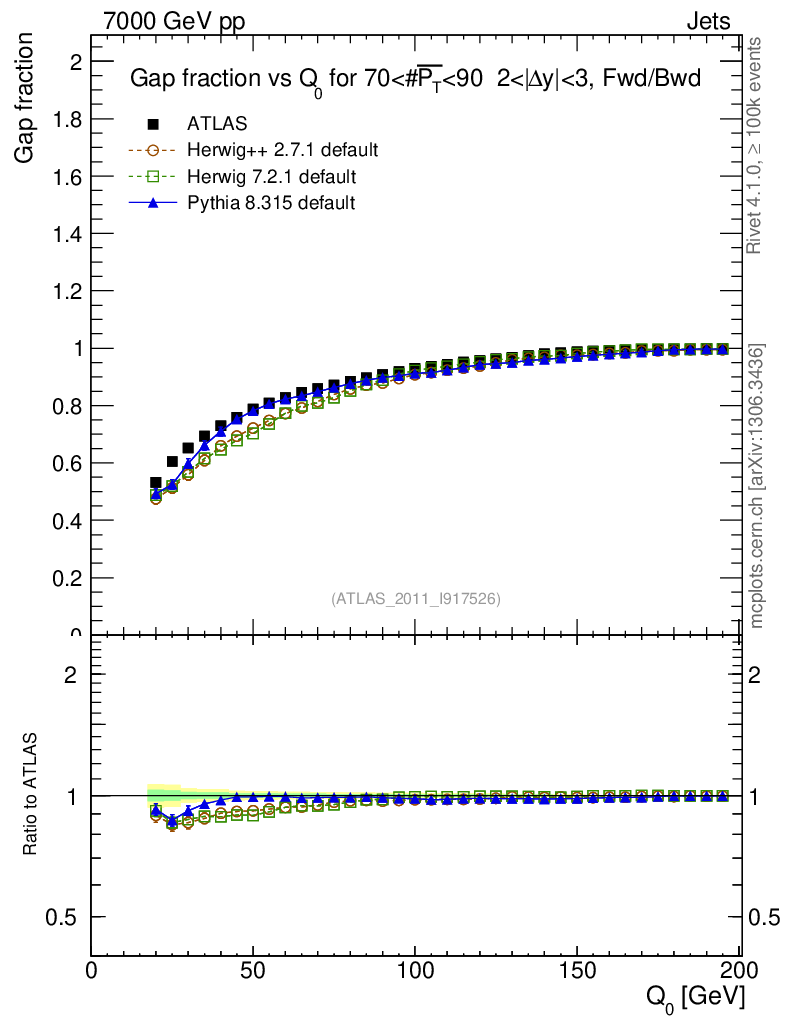 Jets : Jets + Veto : Gap frac. vs Veto scale (FB)