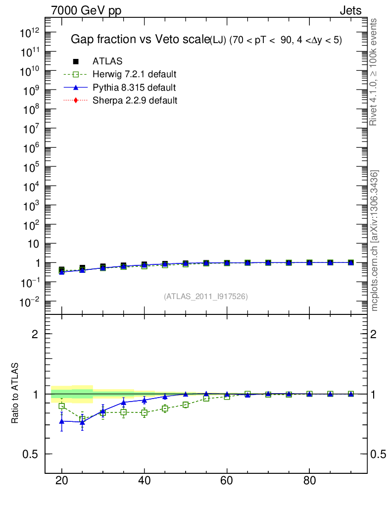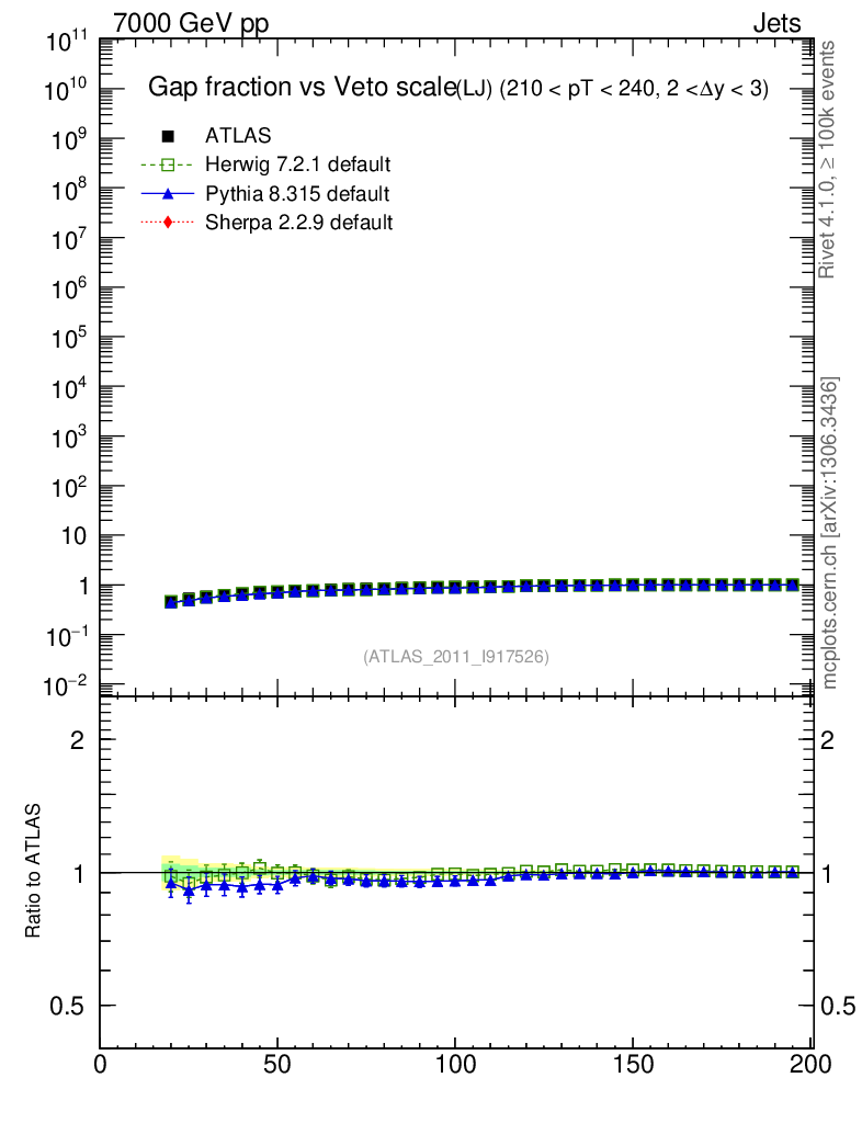 Jets : Jets + Veto : Gap frac. vs Veto scale (LJ)