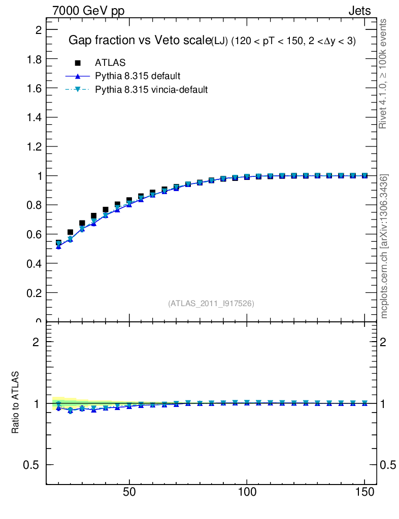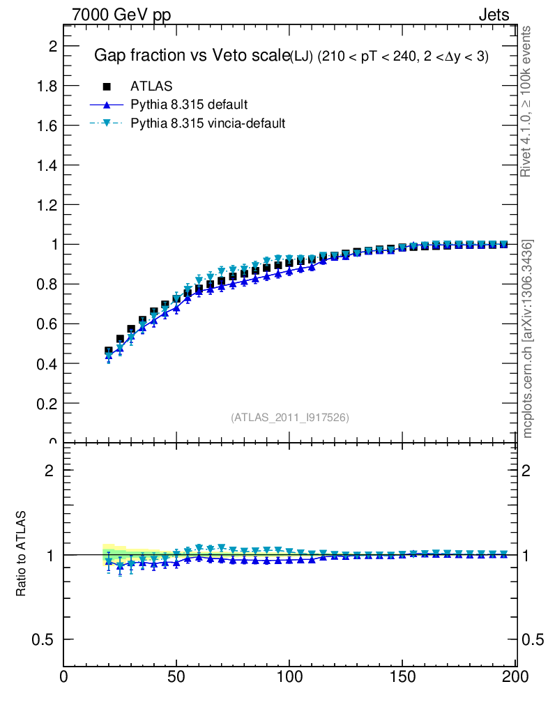 Jets : Jets + Veto : Gap frac. vs Veto scale (LJ)