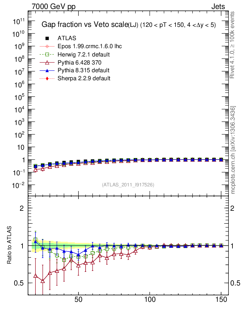 Jets : Jets + Veto : Gap frac. vs Veto scale (LJ)