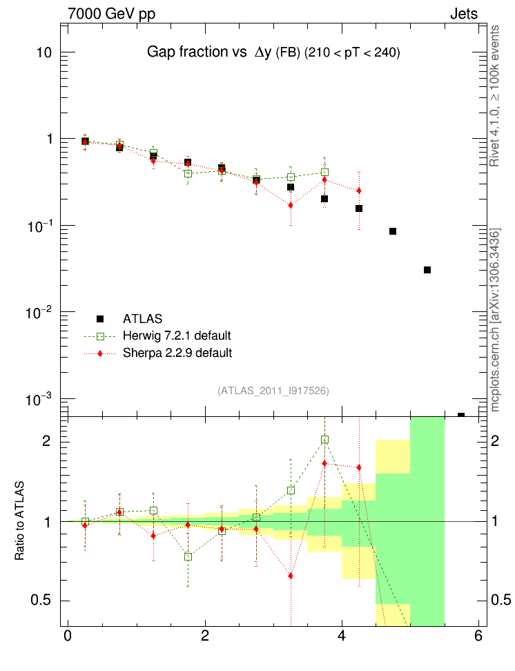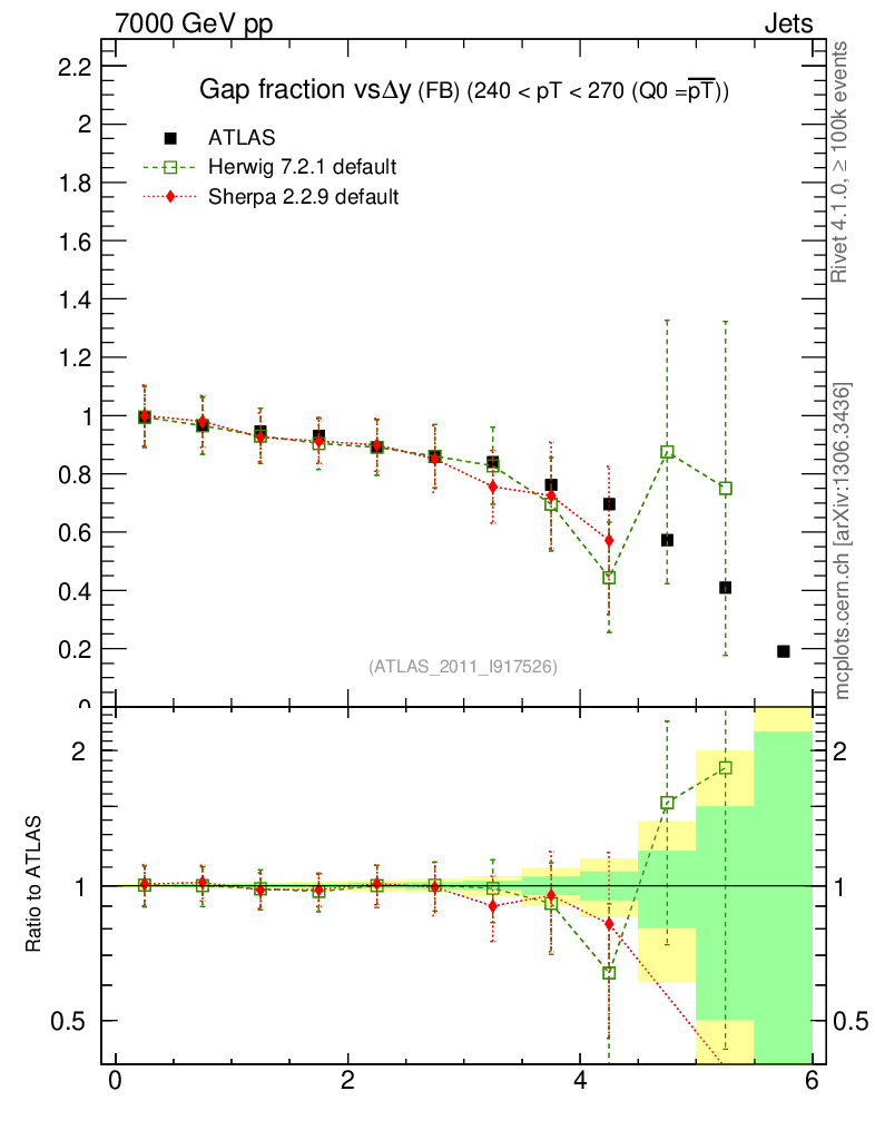 Jets : Jets + Veto : Gap fraction vs Δy (FB)