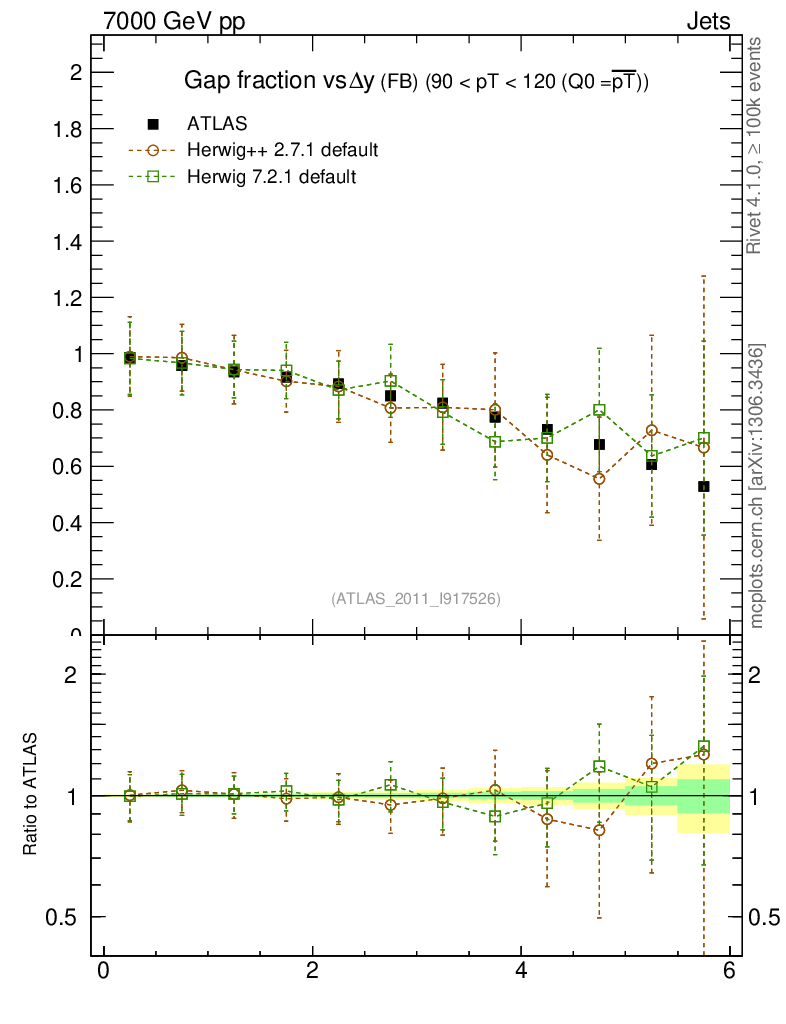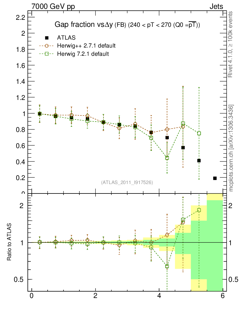 Jets : Jets + Veto : Gap fraction vs Δy (FB)