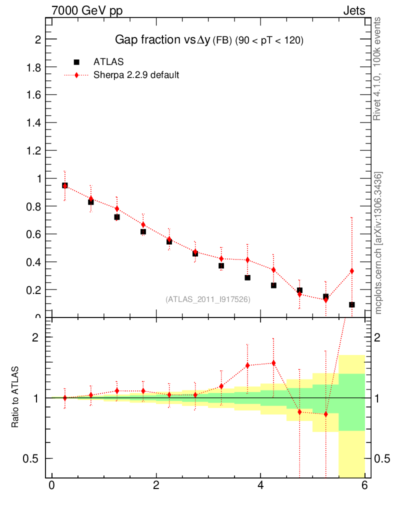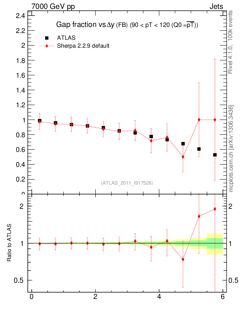 Jets : Jets + Veto : Gap fraction vs Δy (FB)