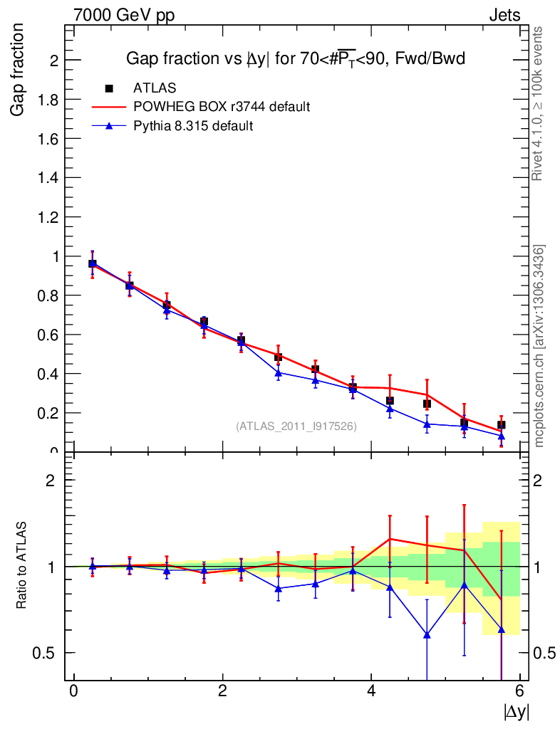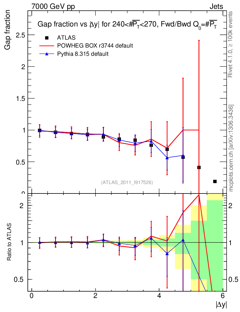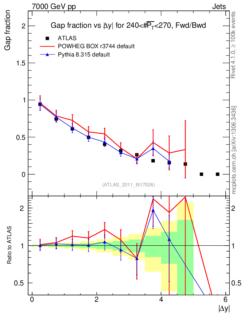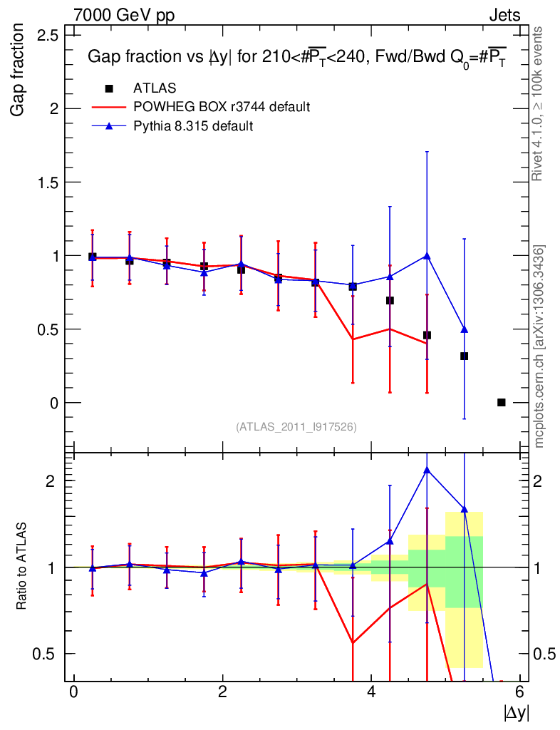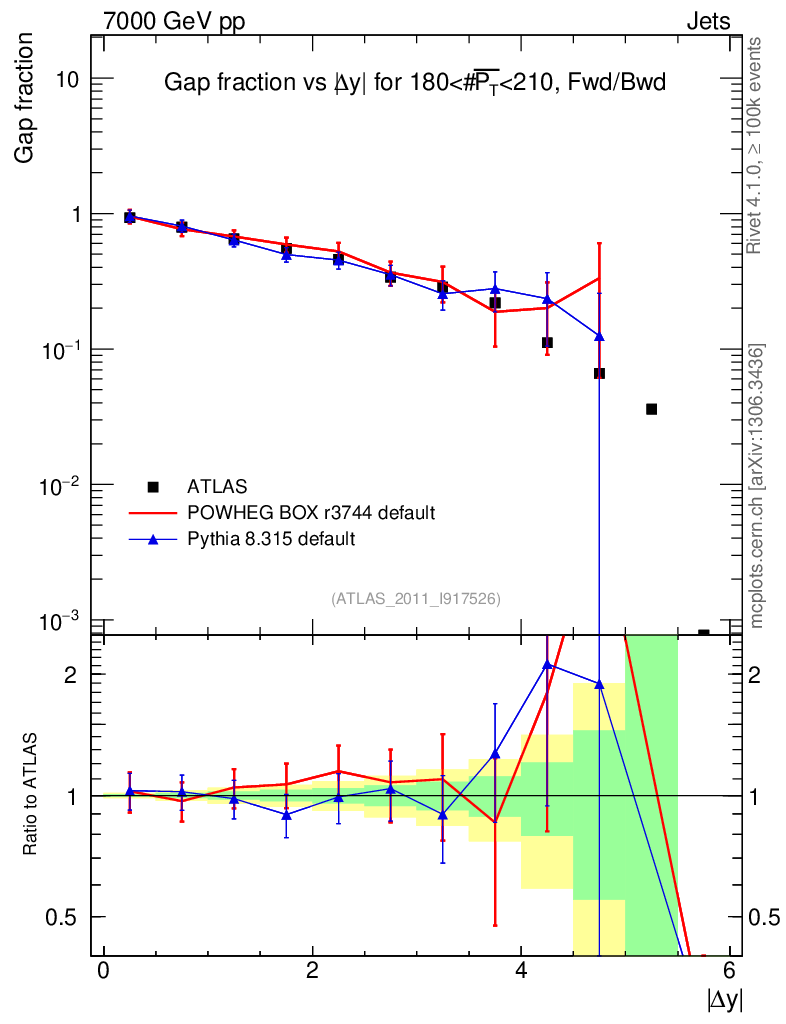 Jets : Jets + Veto : Gap fraction vs Δy (FB)