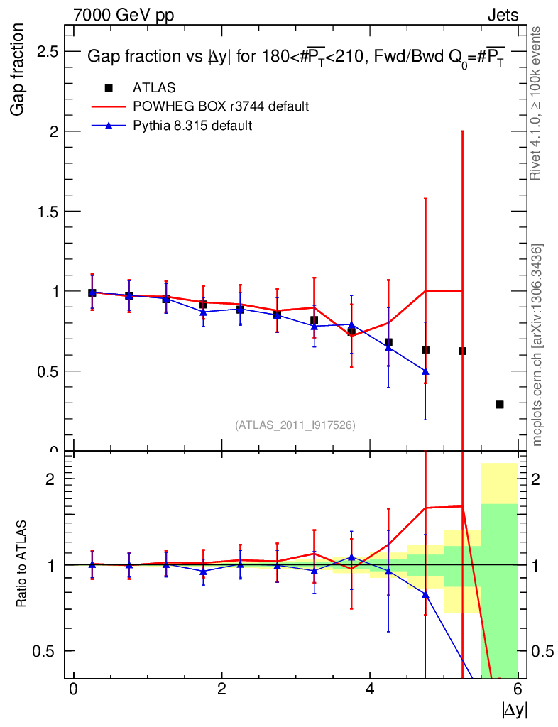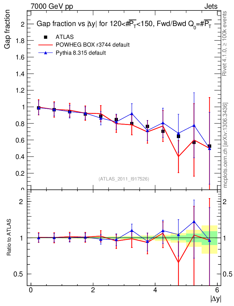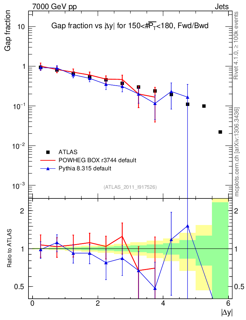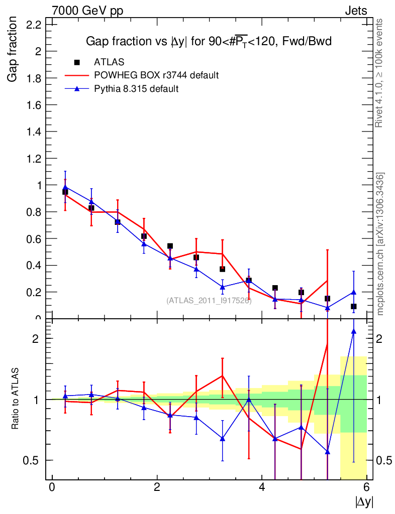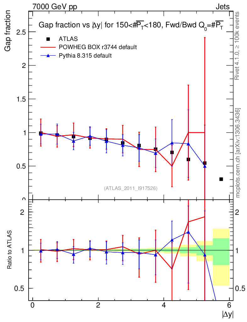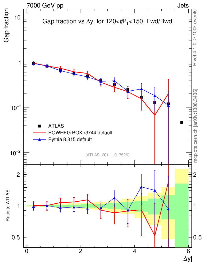 Jets : Jets + Veto : Gap fraction vs Δy (FB)