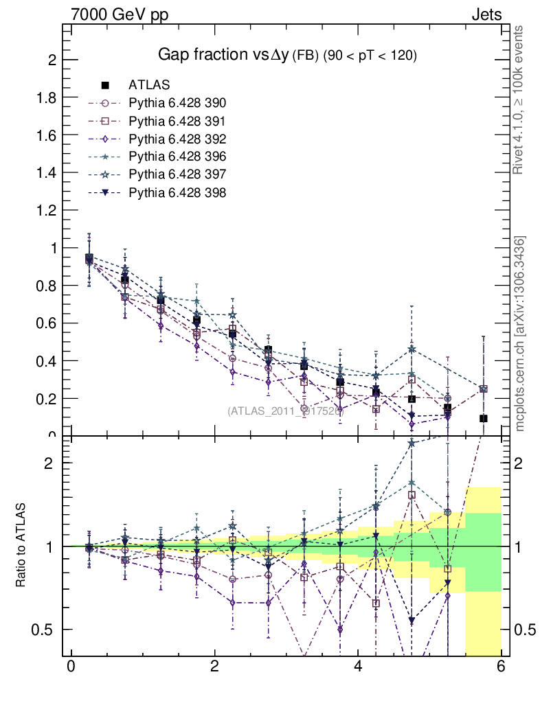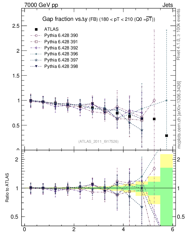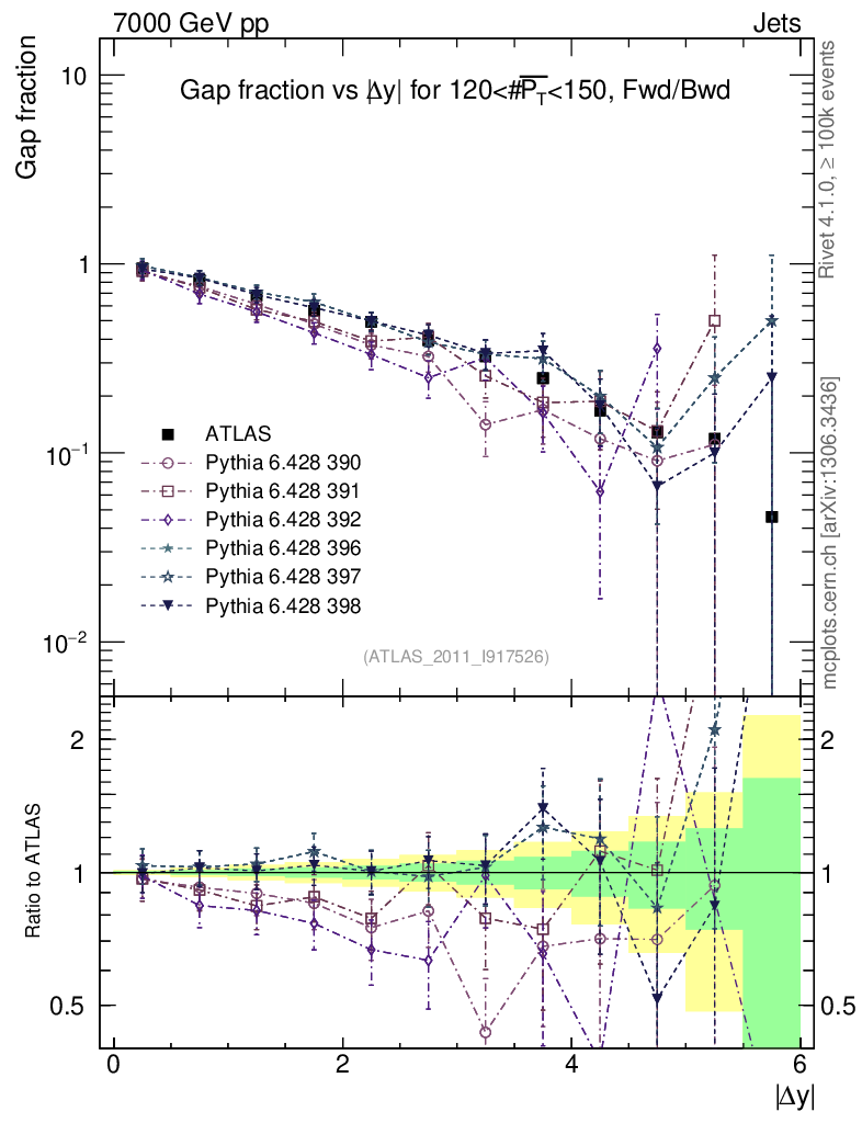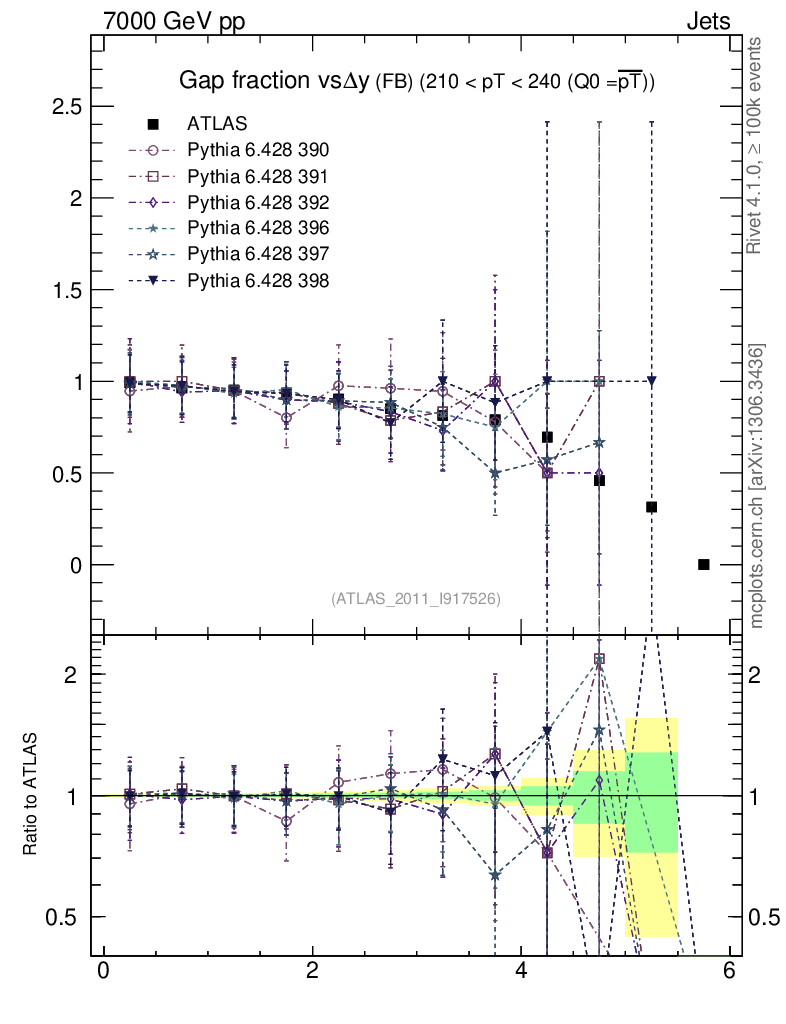 Jets : Jets + Veto : Gap fraction vs Δy (FB)