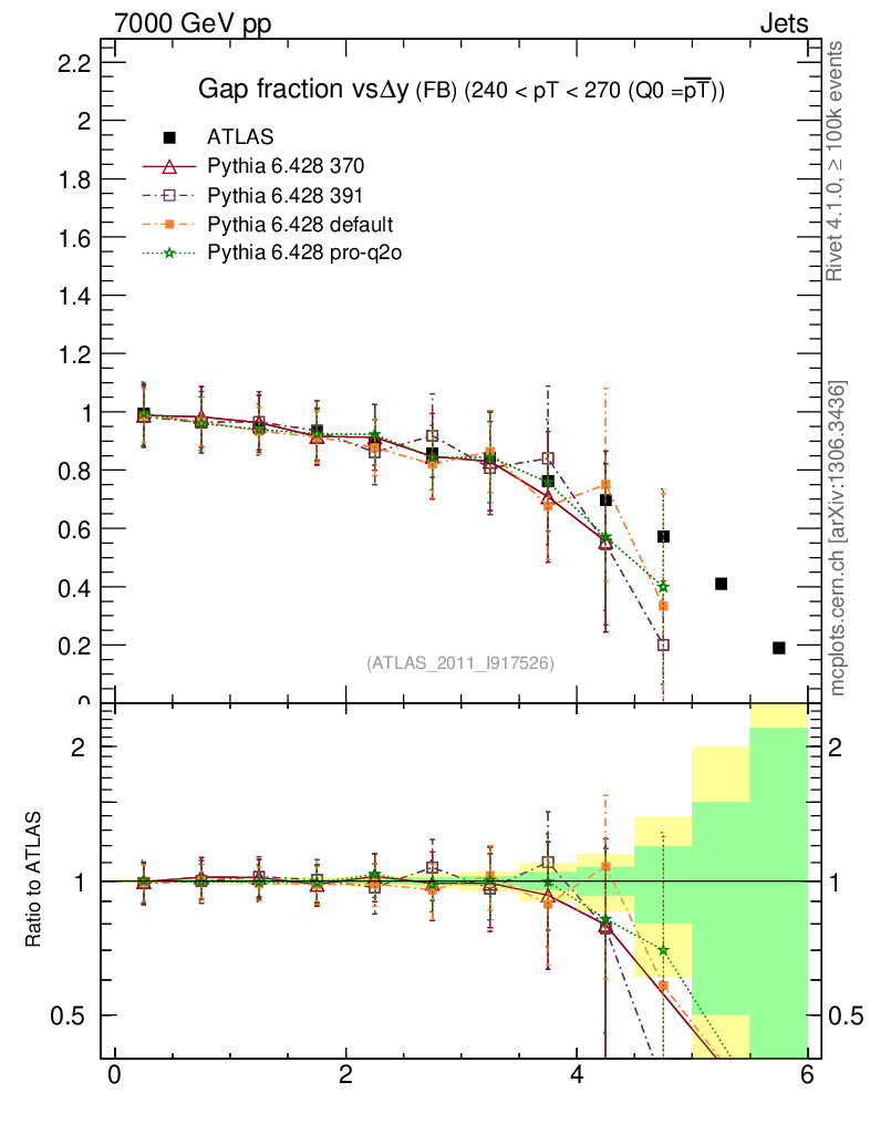 Jets : Jets + Veto : Gap fraction vs Δy (FB)