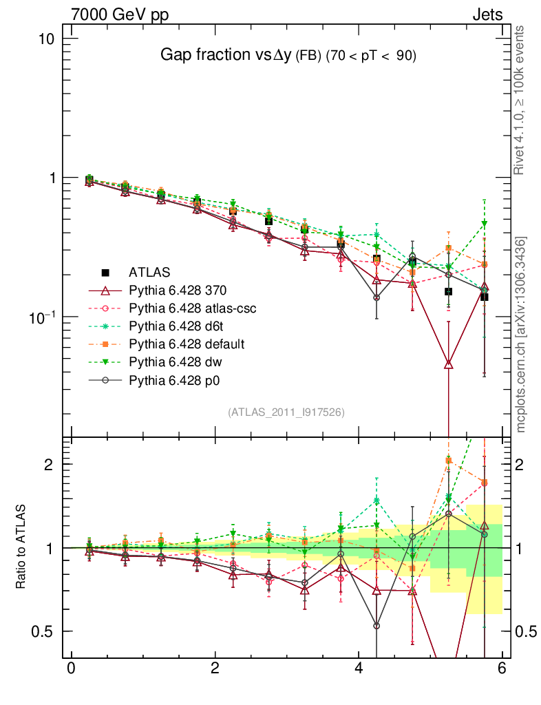 Gap fraction vs Δy (FB)
