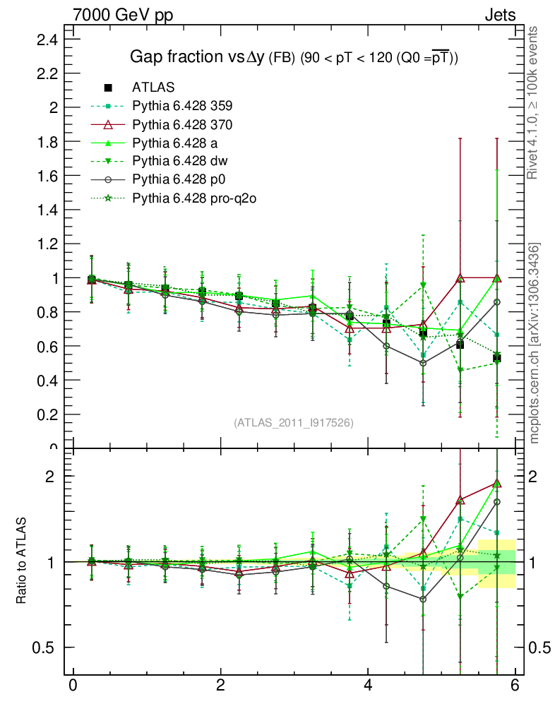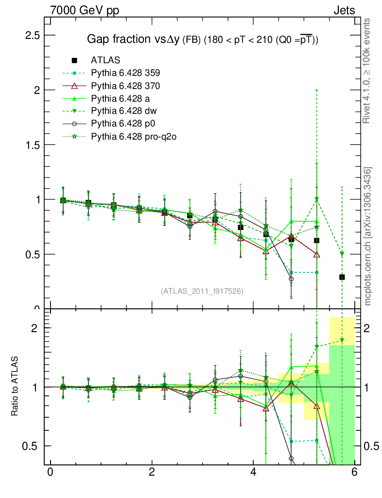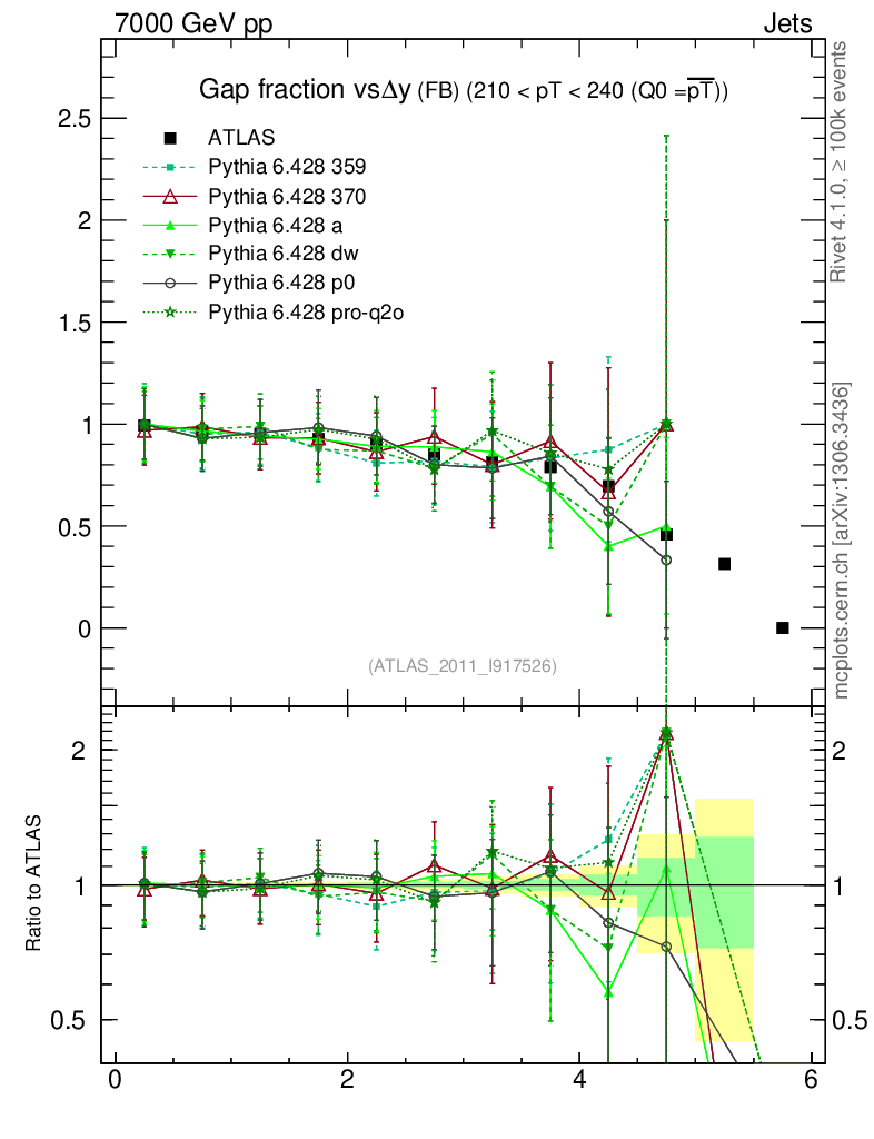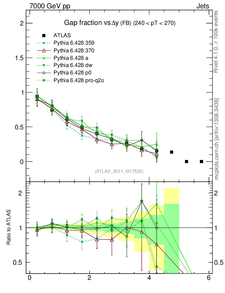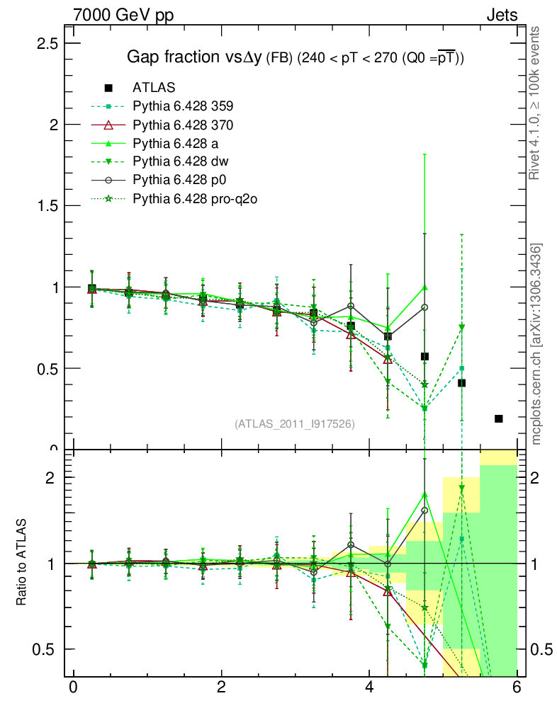 Jets : Jets + Veto : Gap fraction vs Δy (FB)