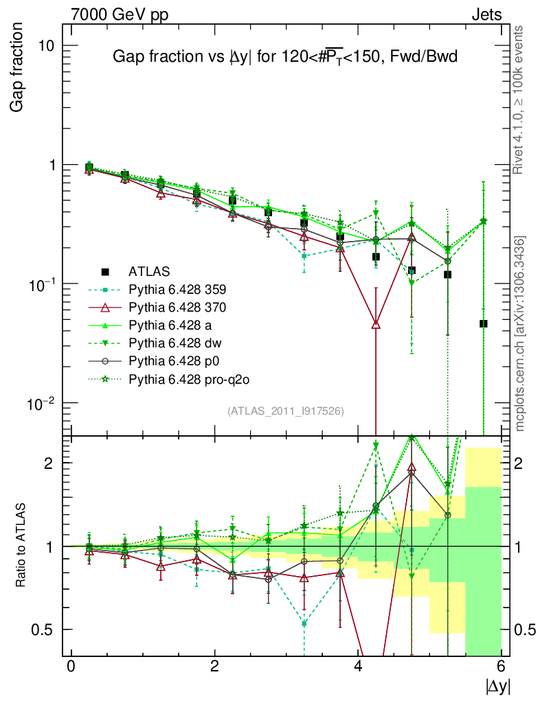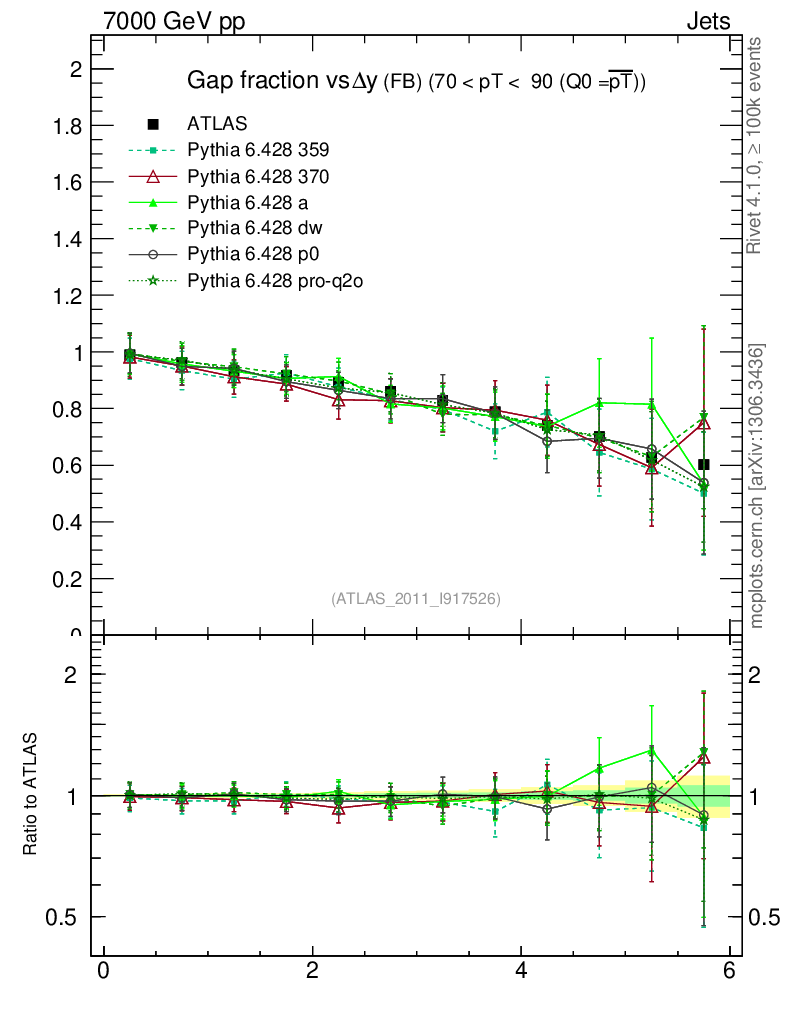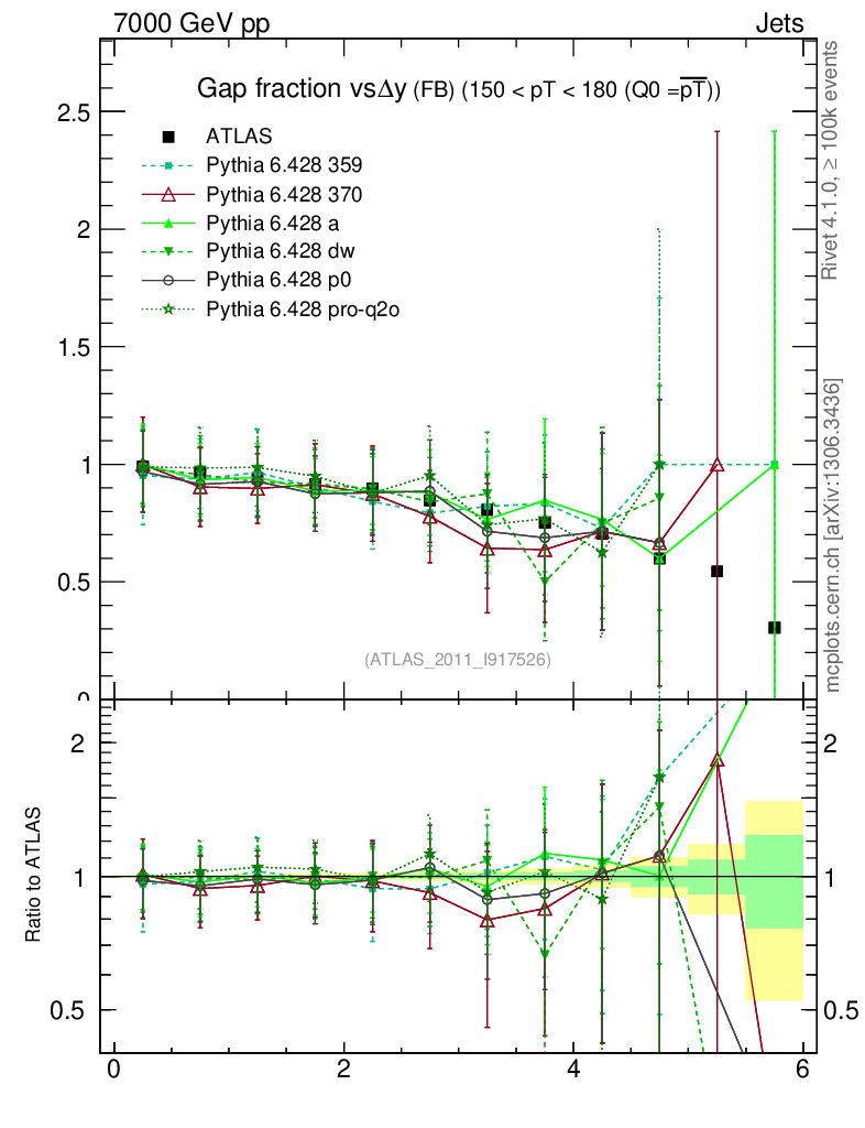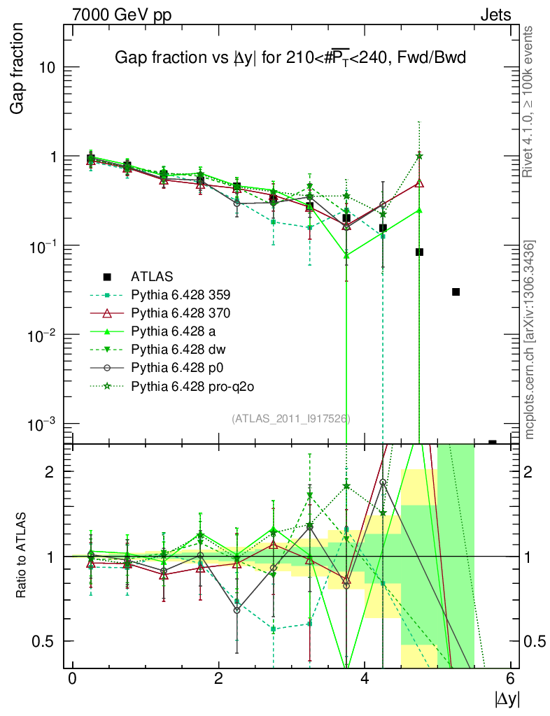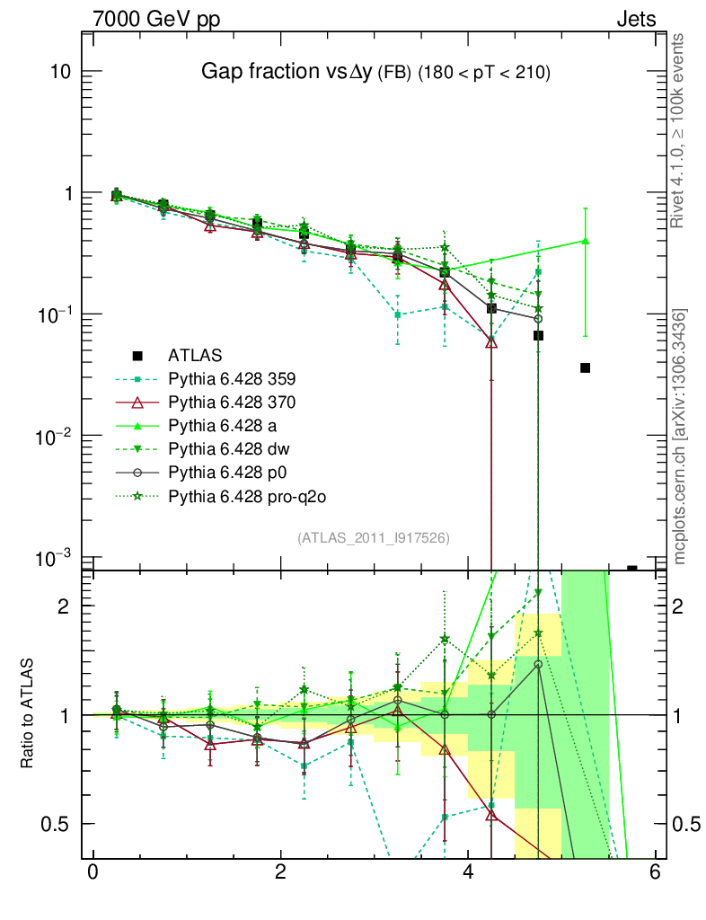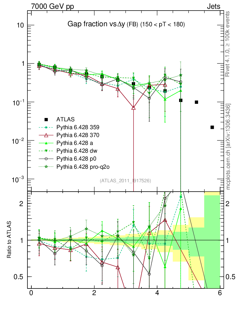 Jets : Jets + Veto : Gap fraction vs Δy (FB)