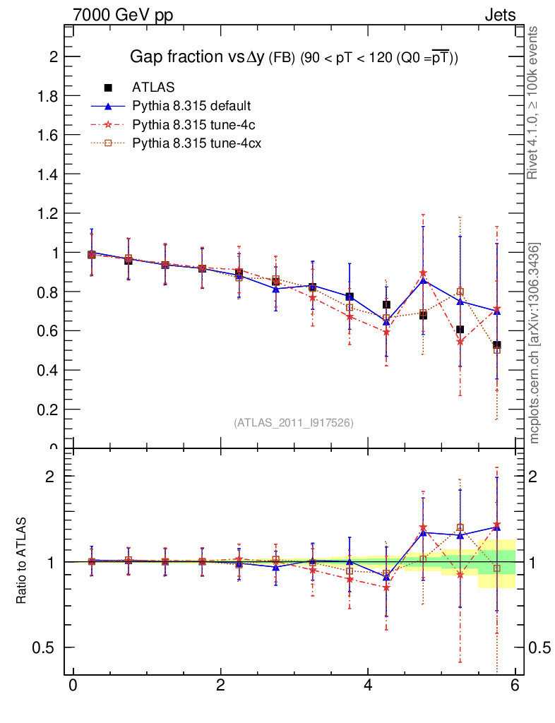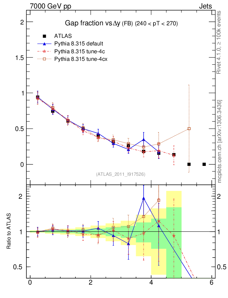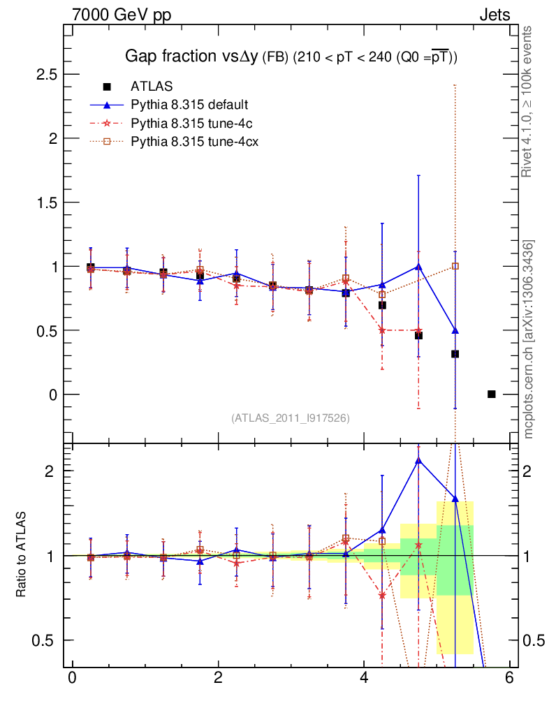 Jets : Jets + Veto : Gap fraction vs Δy (FB)