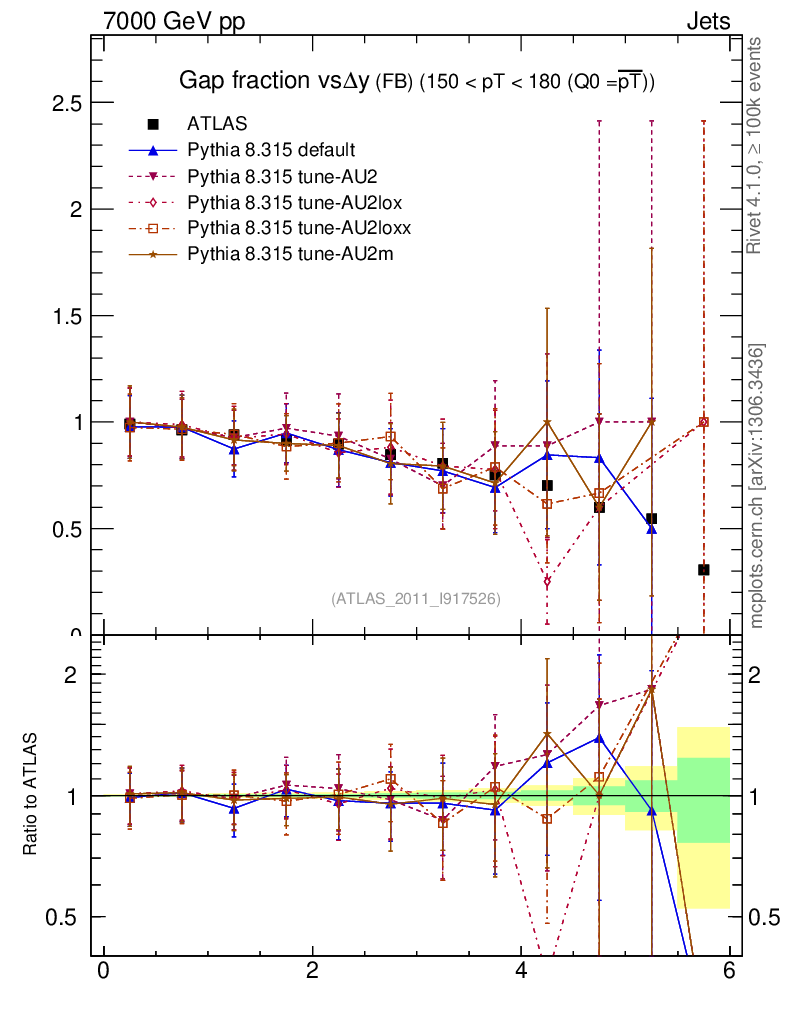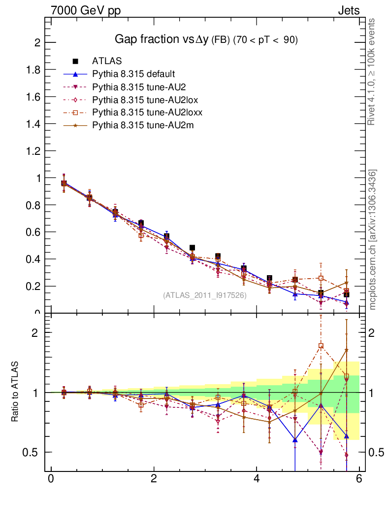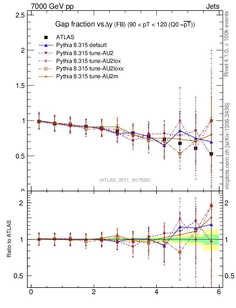 Gap fraction vs Δy (FB)