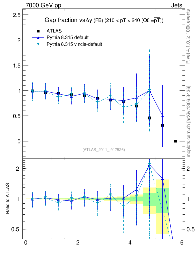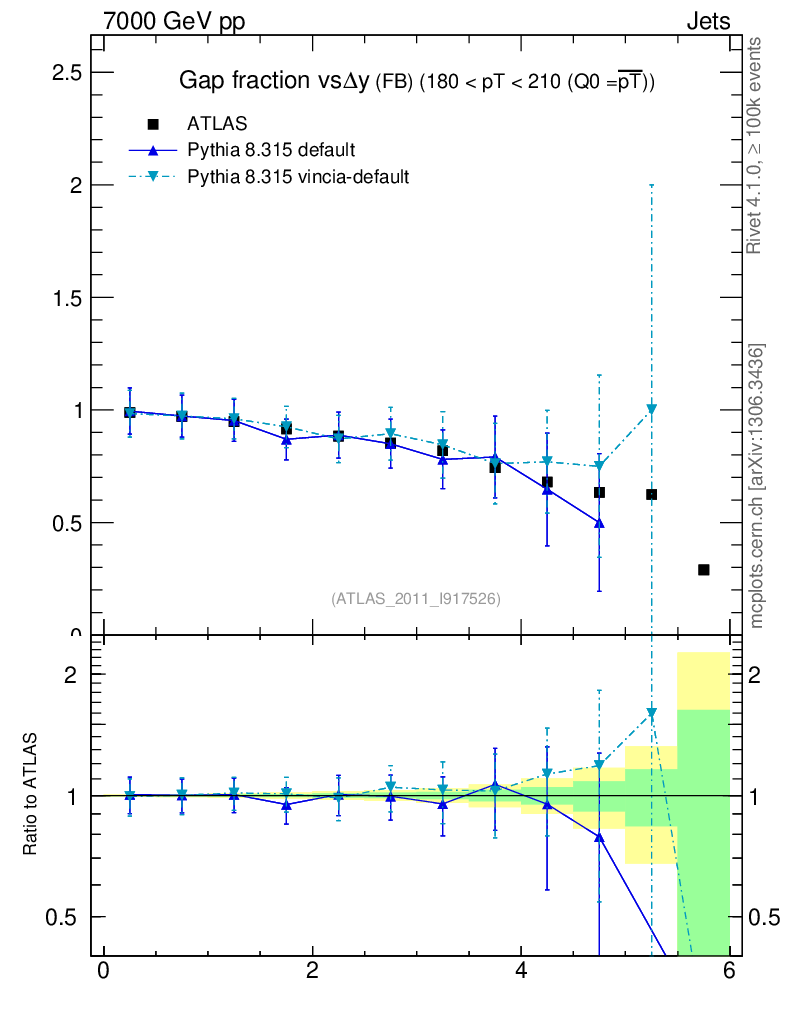 Jets : Jets + Veto : Gap fraction vs Δy (FB)