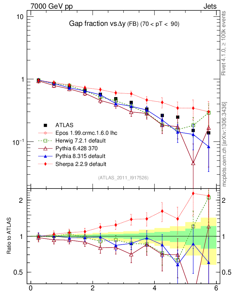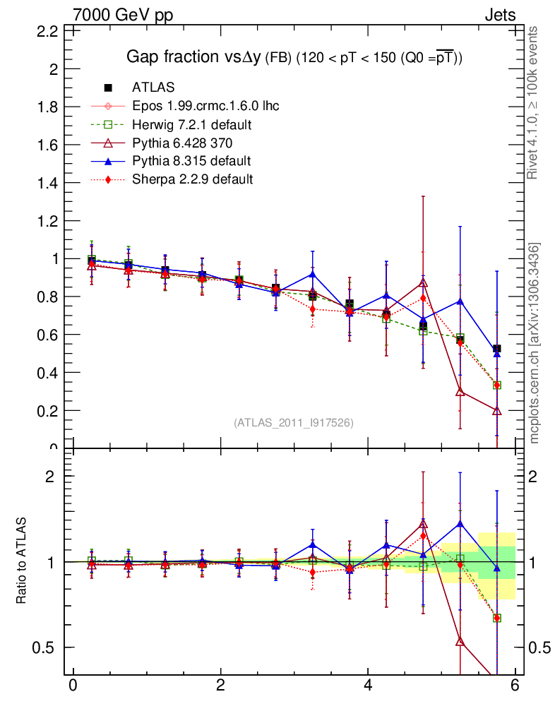 Jets : Jets + Veto : Gap fraction vs Δy (FB)