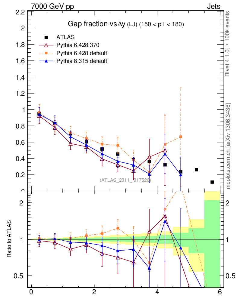 Jets : Jets + Veto : Gap fraction vs Δy (LJ)