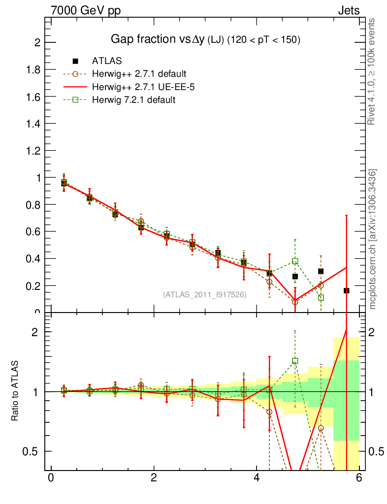 Jets : Jets + Veto : Gap fraction vs Δy (LJ)