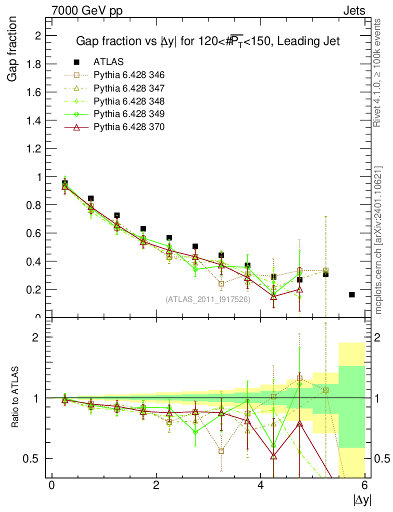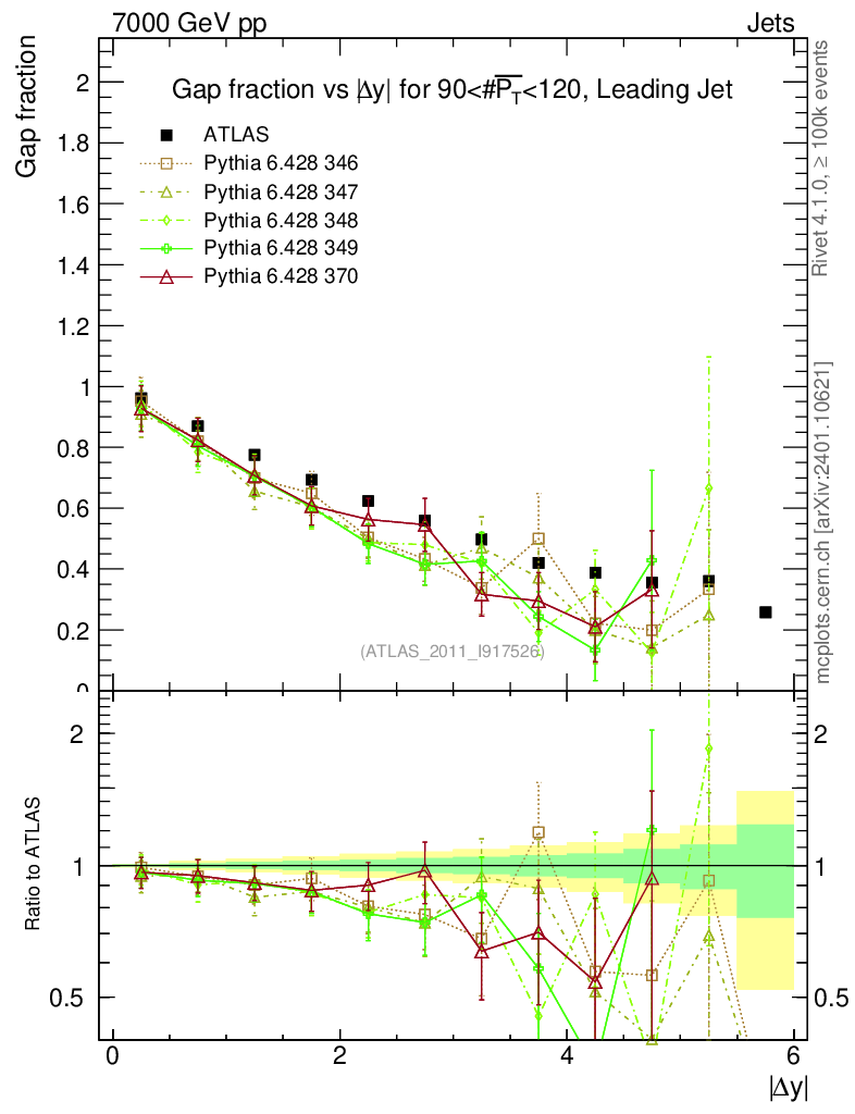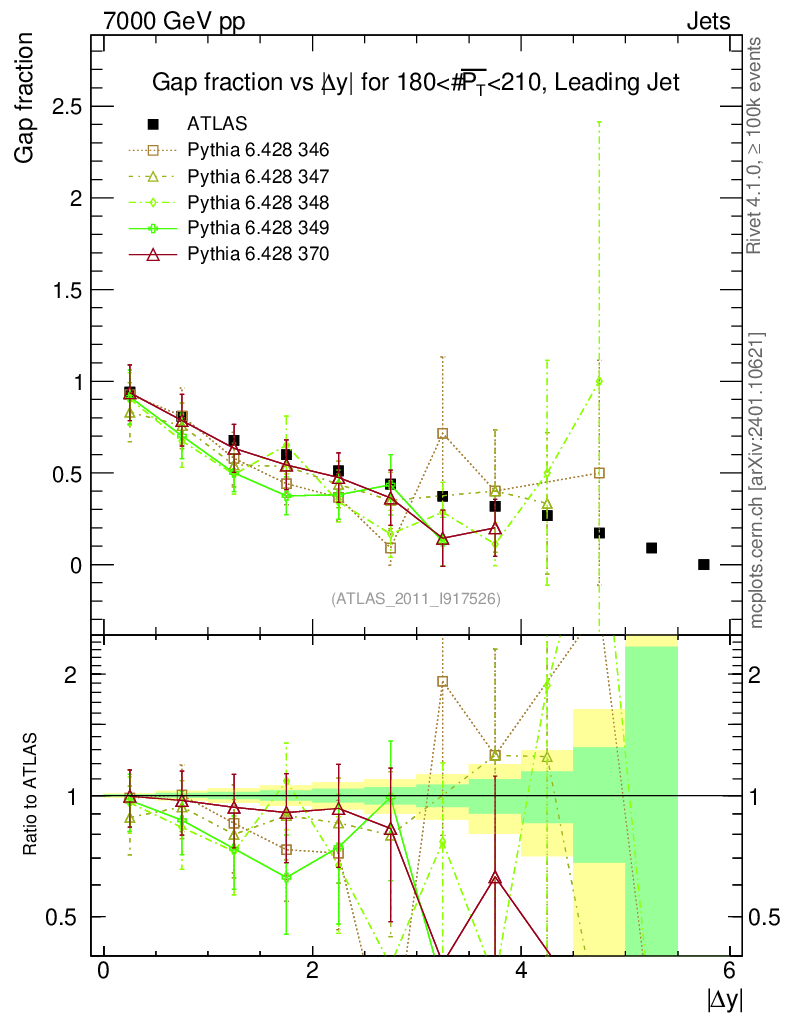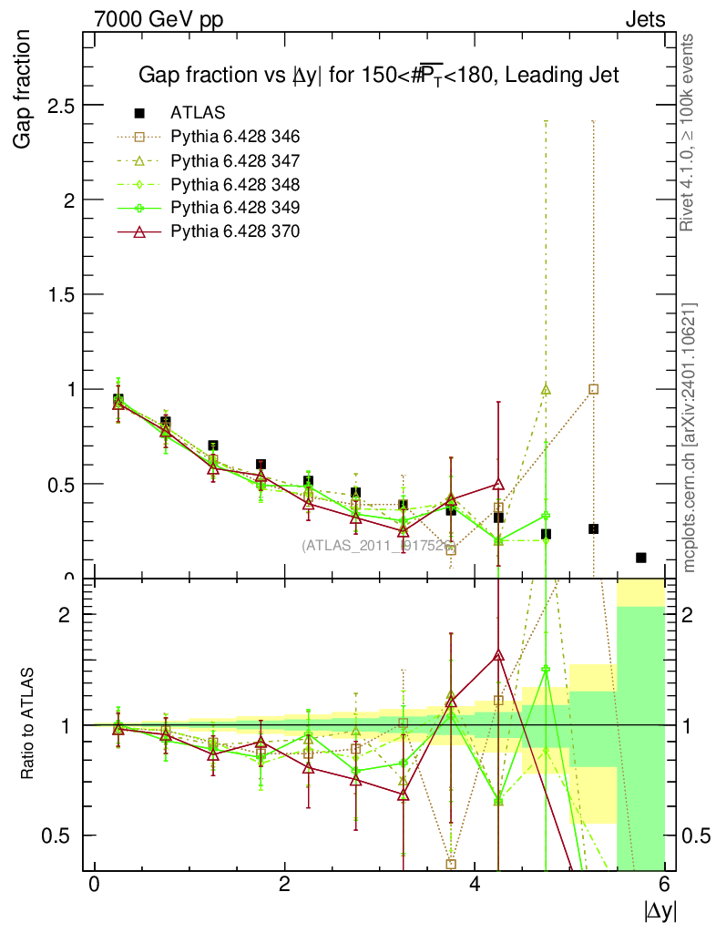 Jets : Jets + Veto : Gap fraction vs Δy (LJ)