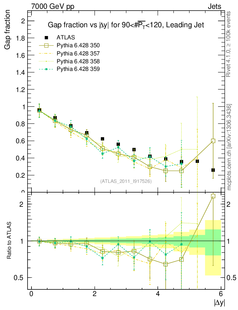 Jets : Jets + Veto : Gap fraction vs Δy (LJ)