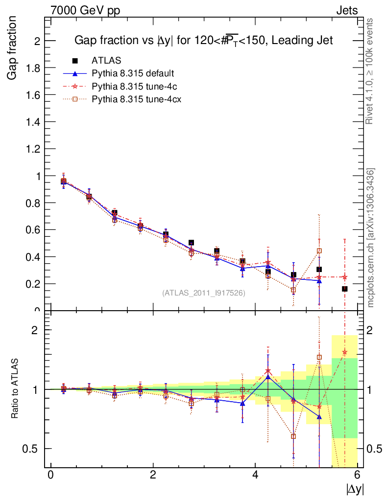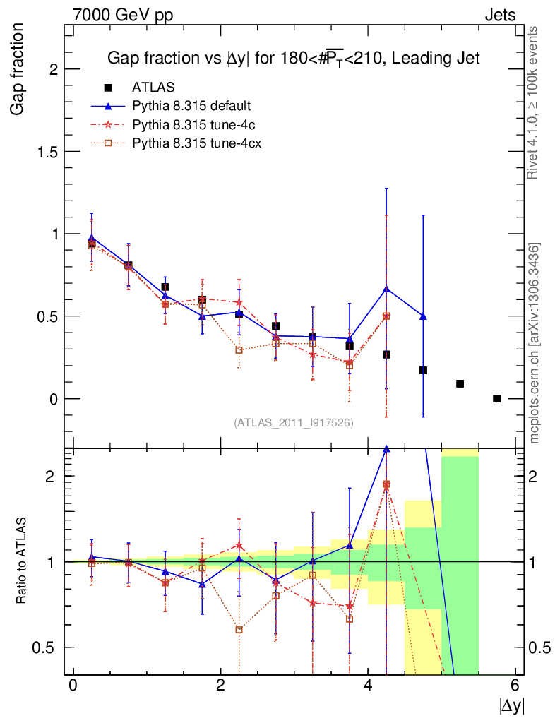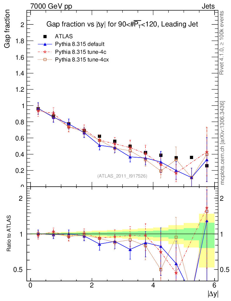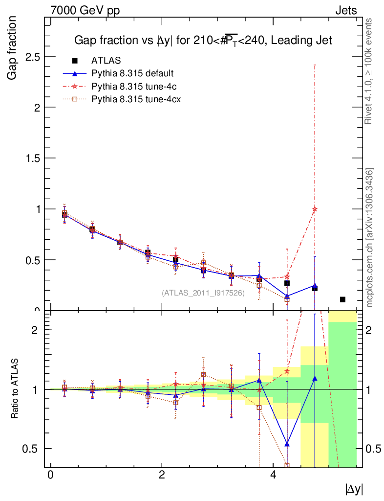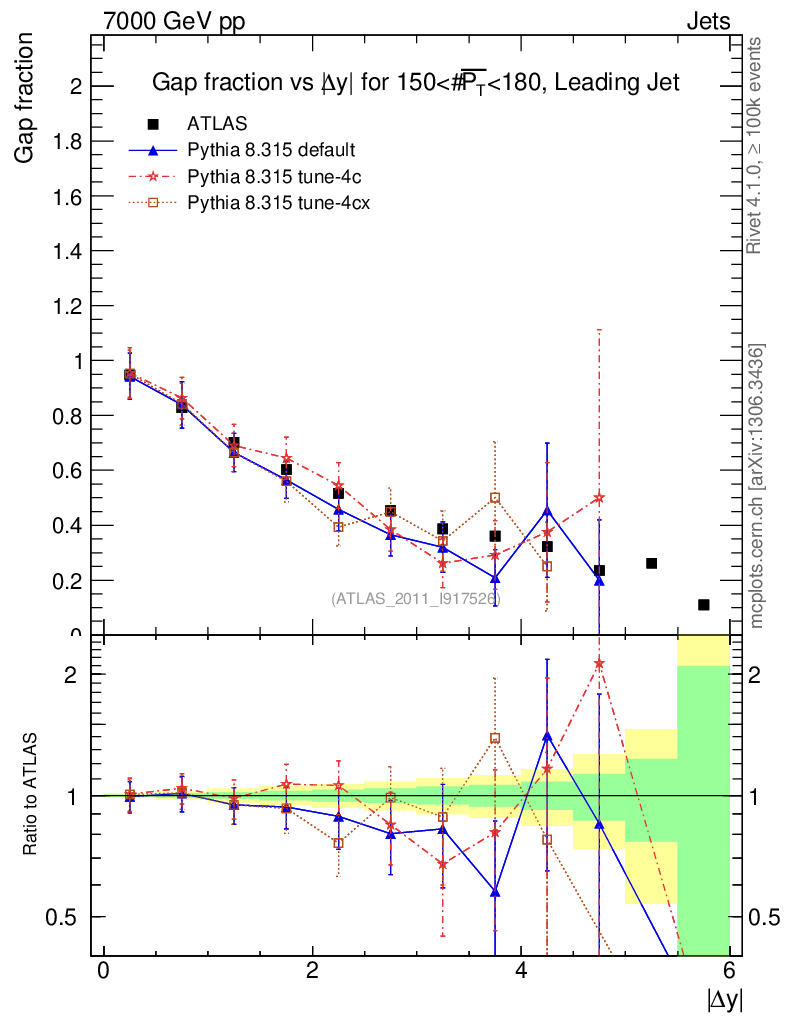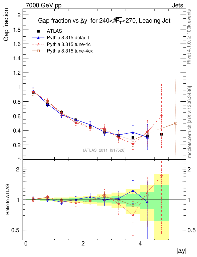 Jets : Jets + Veto : Gap fraction vs Δy (LJ)