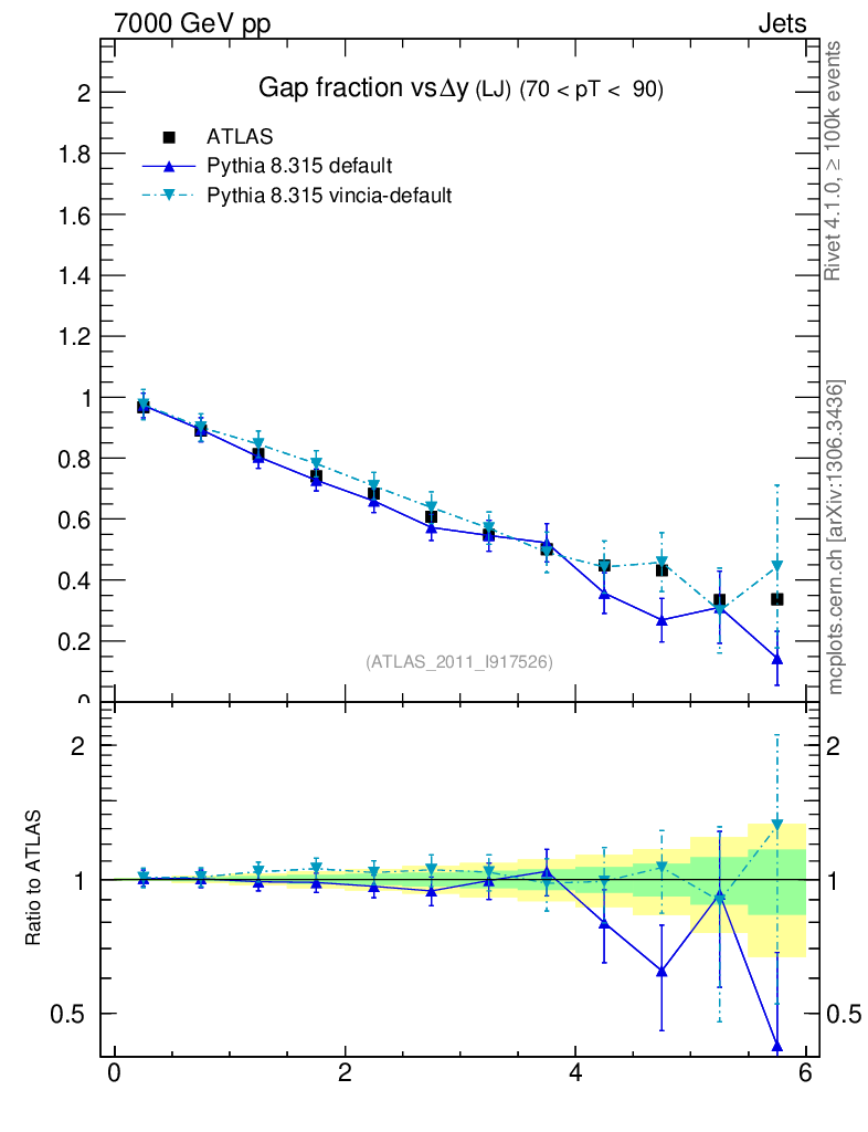 Jets : Jets + Veto : Gap fraction vs Δy (LJ)