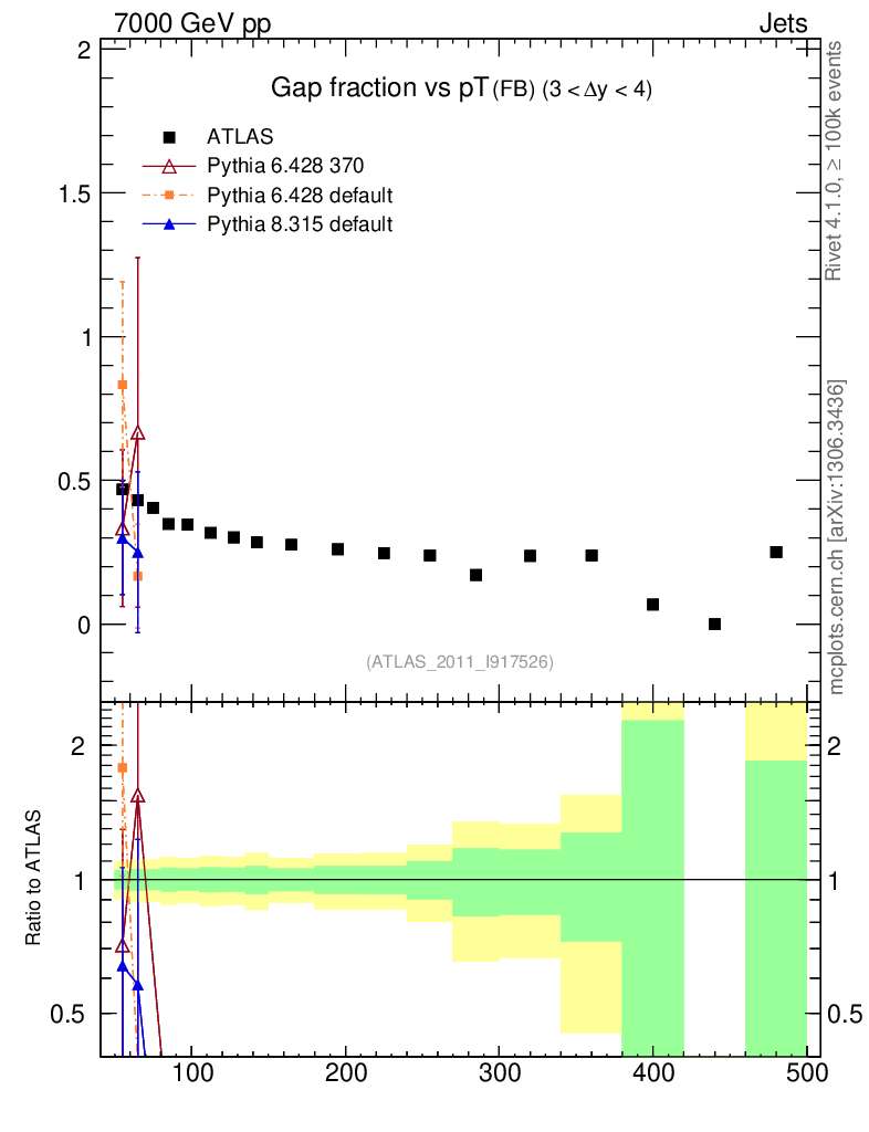 Jets : Jets + Veto : Gap fraction vs pT (FB)
