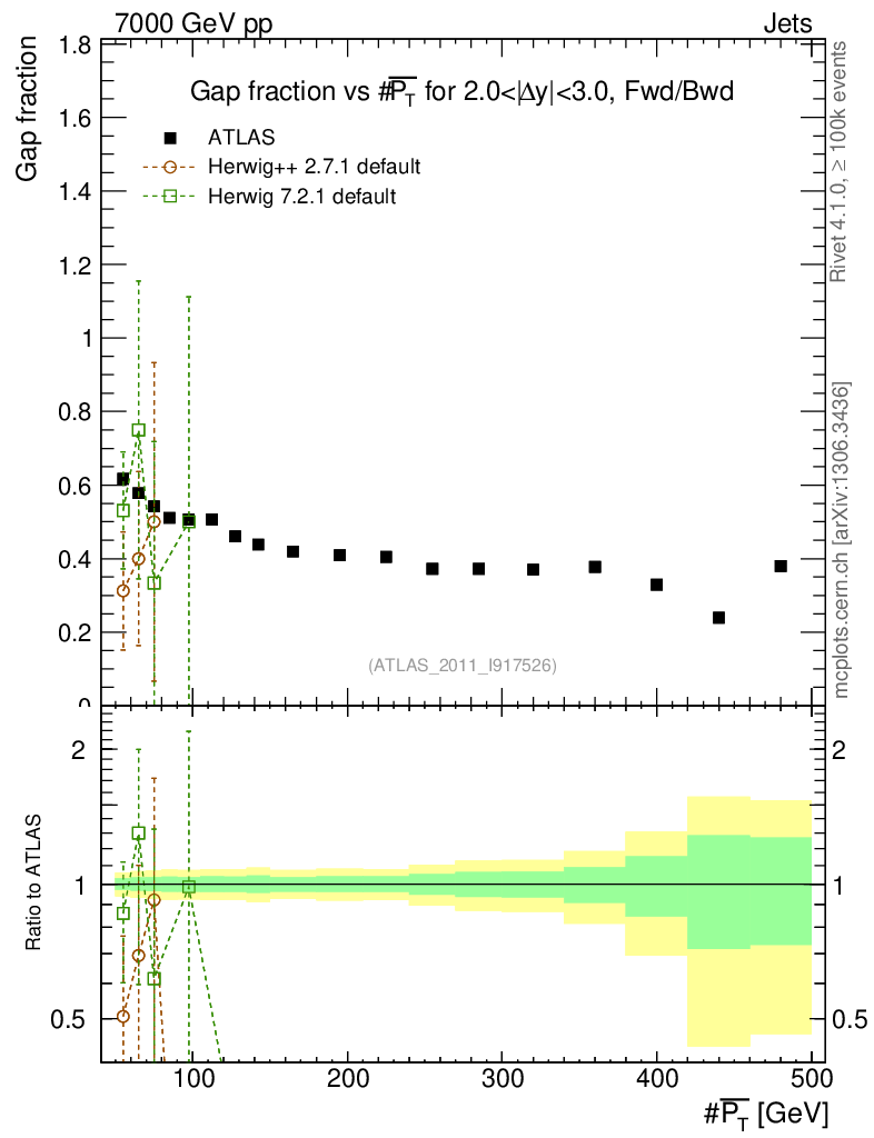Jets : Jets + Veto : Gap fraction vs pT (FB)