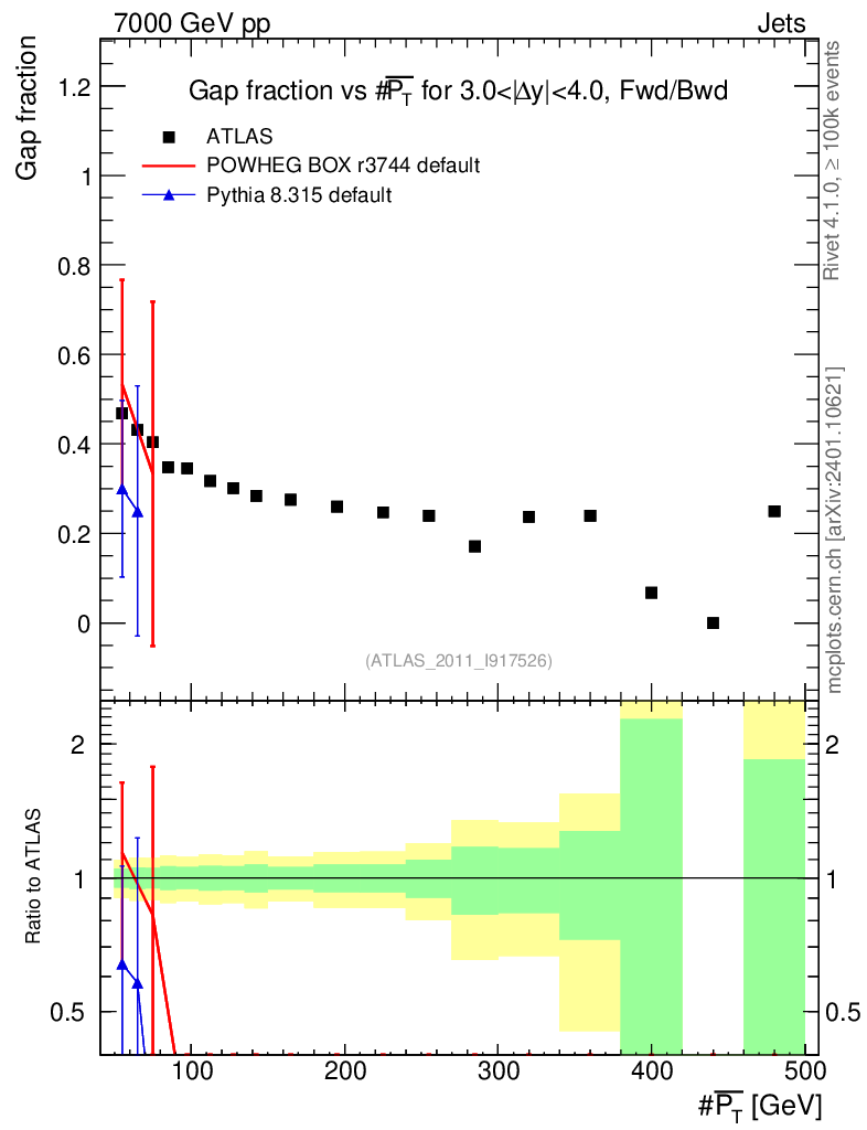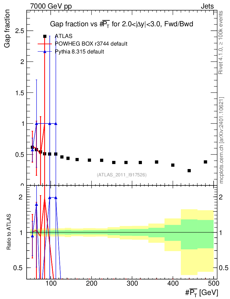 Jets : Jets + Veto : Gap fraction vs pT (FB)