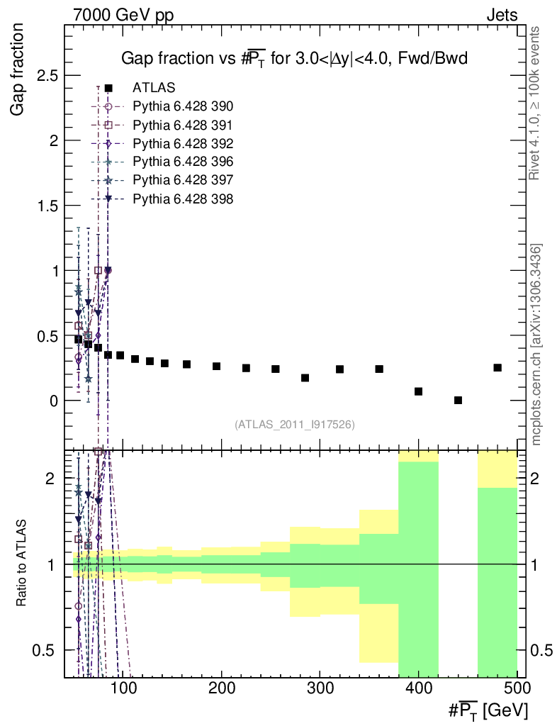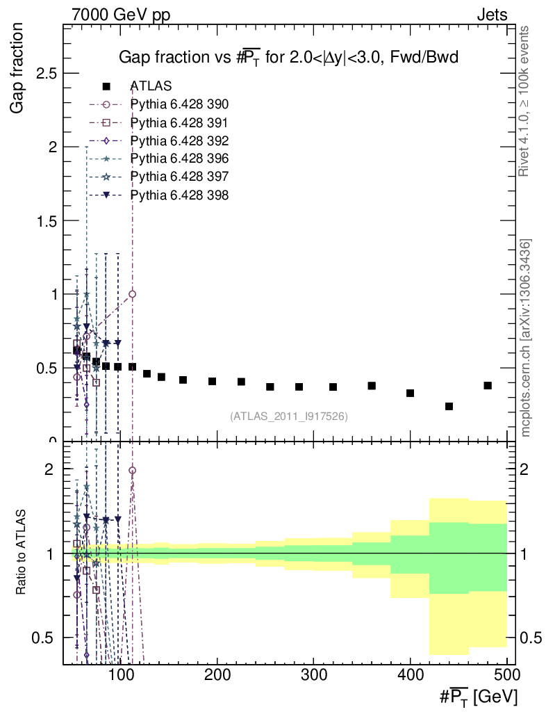 Gap fraction vs pT (LJ)
