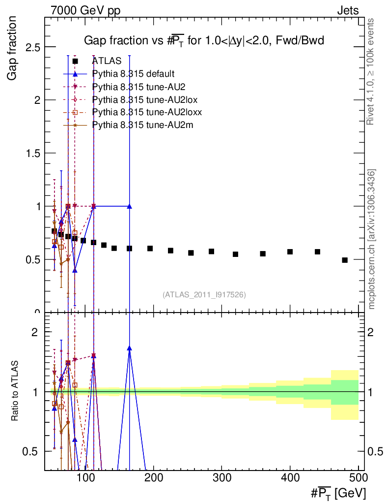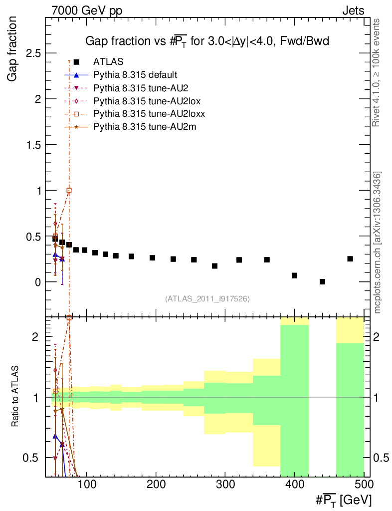 Jets : Jets + Veto : Gap fraction vs pT (FB)