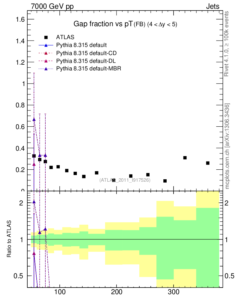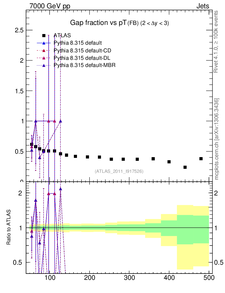 Jets : Jets + Veto : Gap fraction vs pT (FB)